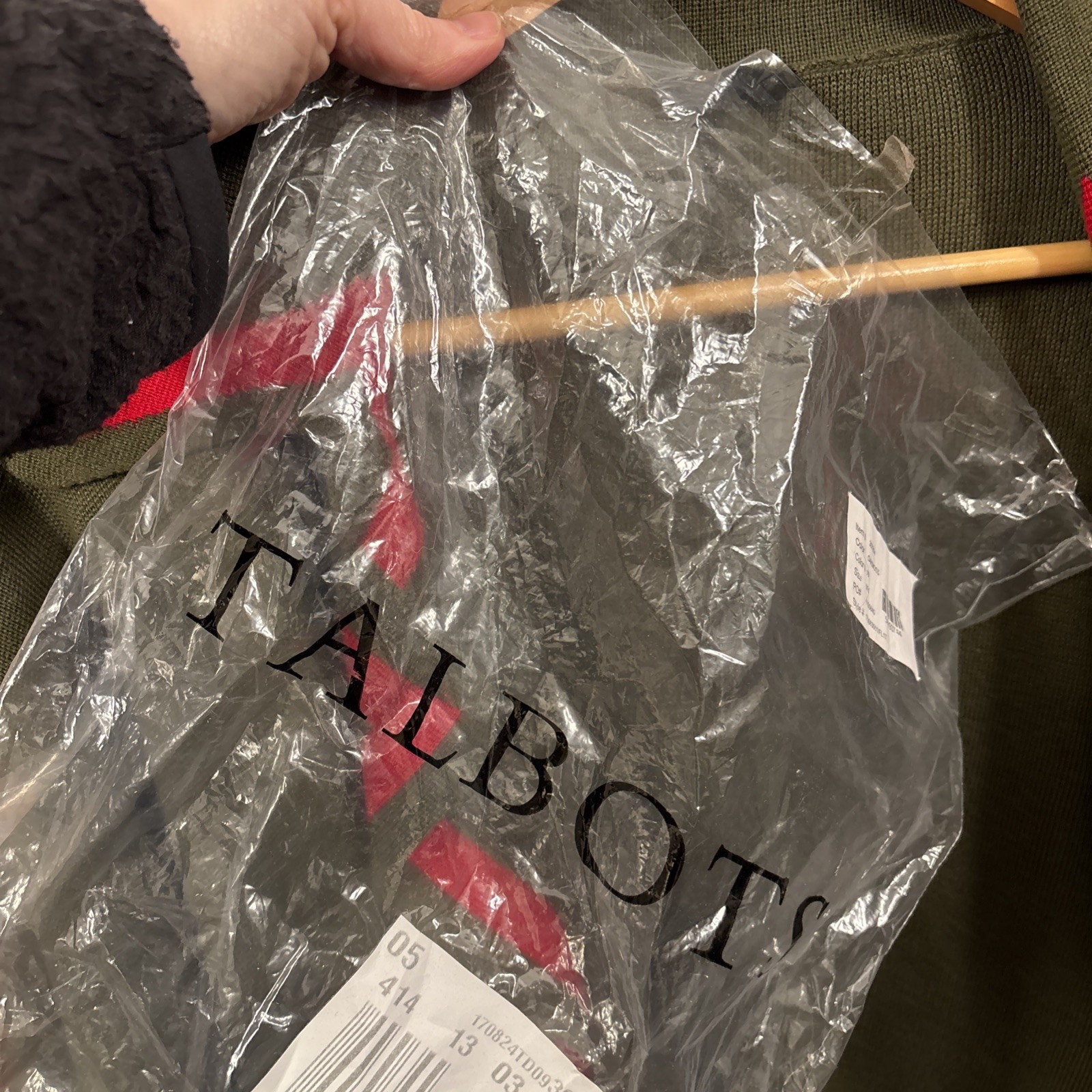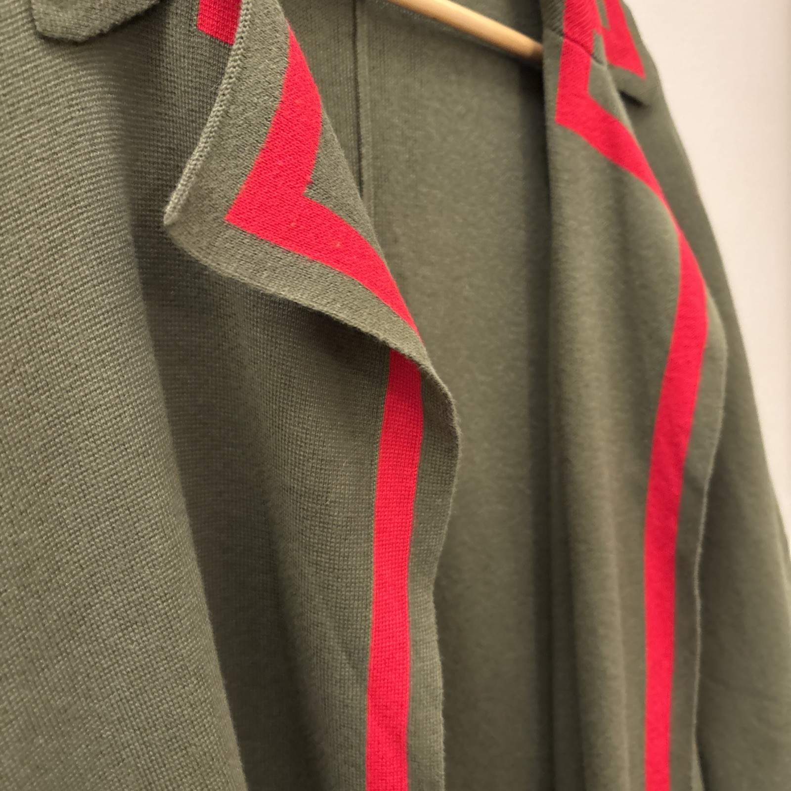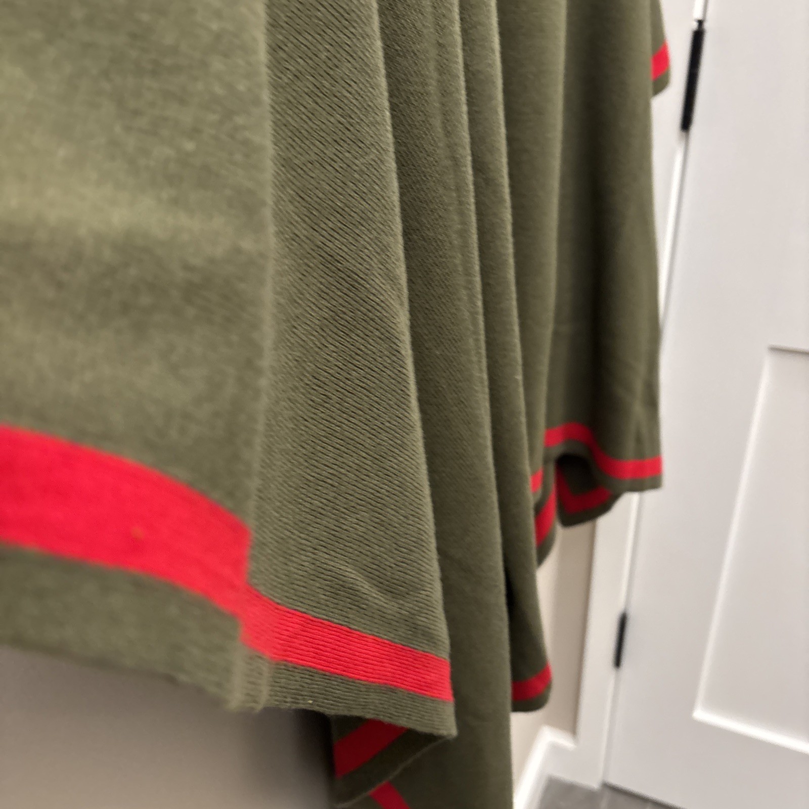 как выглядит NWT TALBOTS Womens Cape Collared Sweater Shawl Olive w/ Red Edge Sz ONE SIZE фото