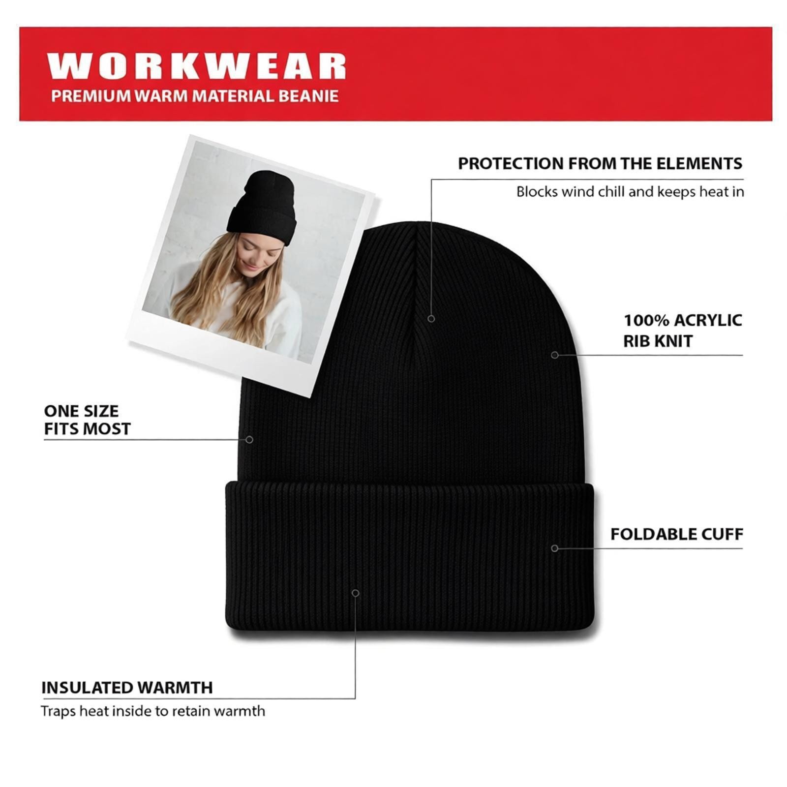 Plain Blank Solid Cuffed Knit Beanie Toque Hat Winter Thick Skully Cold Black
