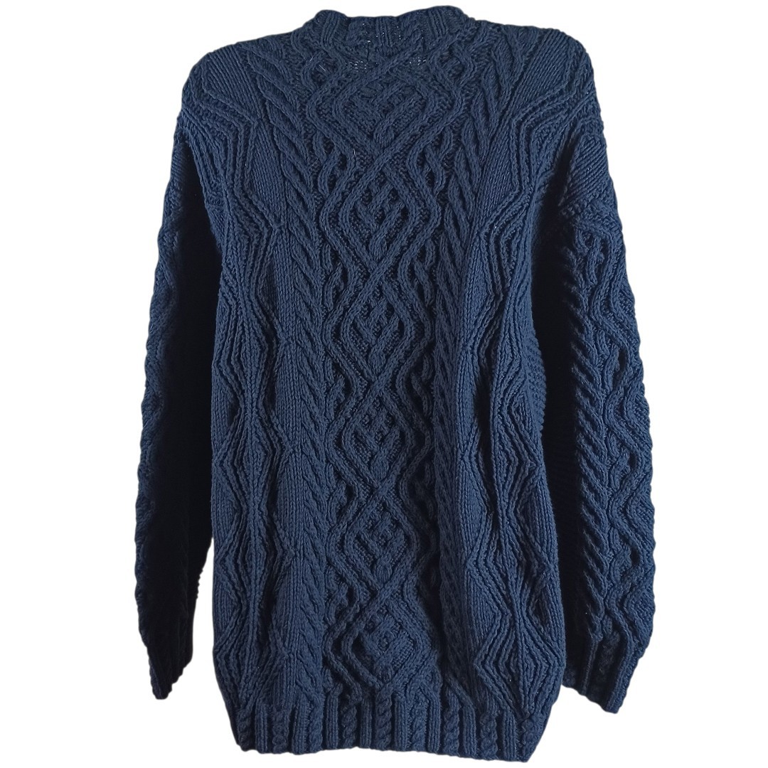 Vtg Eddie Bauer Fisherman L Petite Sweater Navy Chunky Cable Knit 100 Cotton