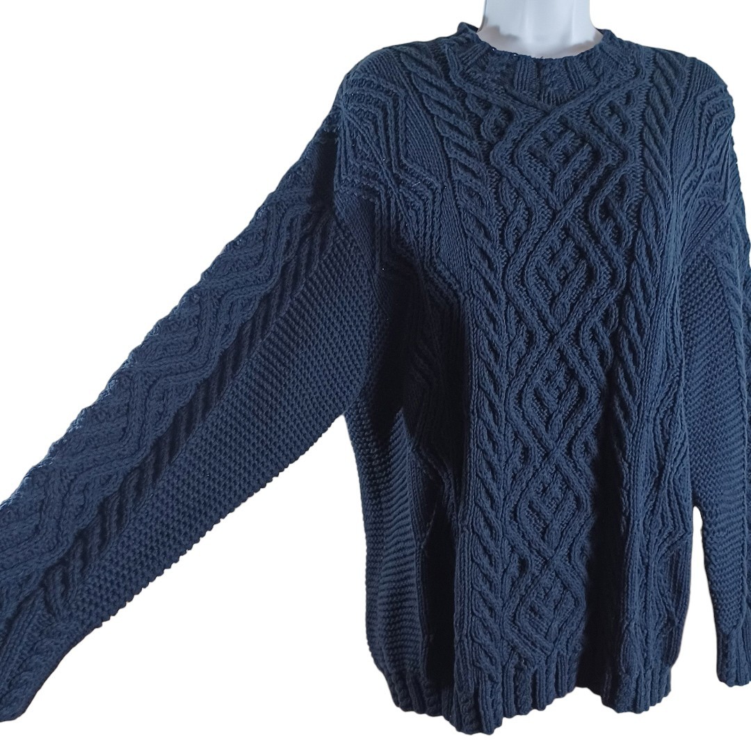 как выглядит Vtg Eddie Bauer Fisherman L Petite Sweater Navy Chunky Cable Knit 100 Cotton фото
