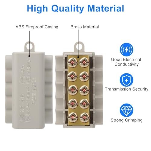 6PCS 6 AWG Wire Connector Nut Kit, 80A Screw-Fixed Quick Splicing Brass Terminal