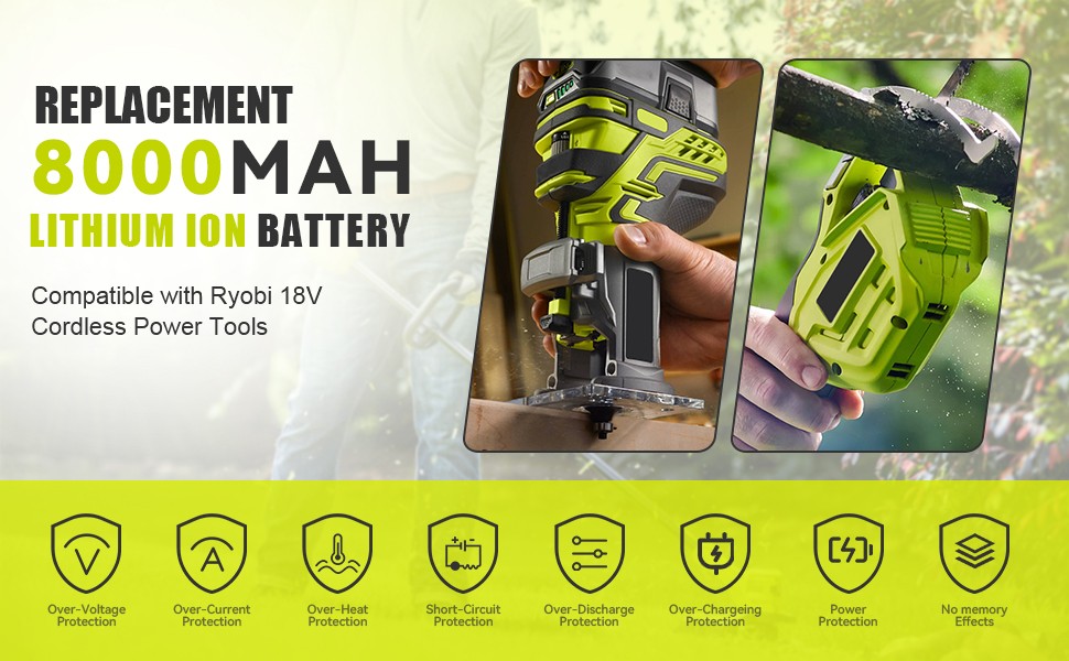 2Pack 8.0Ah For RYOBI P108 18V Battery High Capacity Lithium-Ion For One Plus US