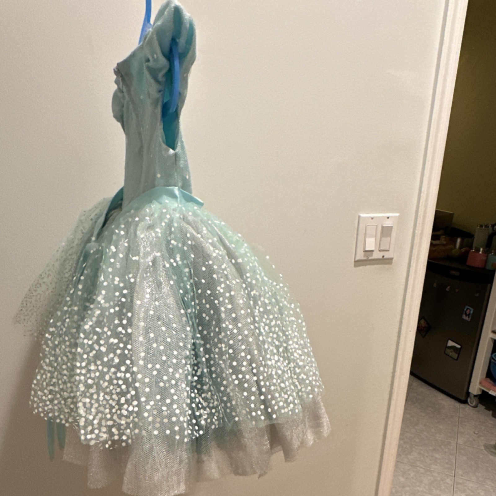 как выглядит Girls Light Blue Short Sleeve Glitter Dance Dress Tutu, Sample, no size tag. фото