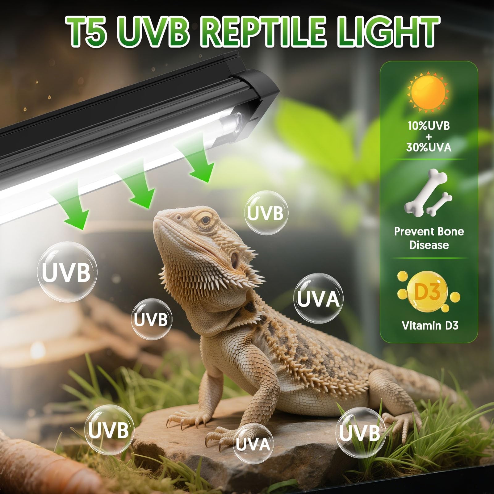 T5 UVB Reptile Light Fixture Combo Kit 8W, 10.0 UVB Light for Reptiles, Terra...