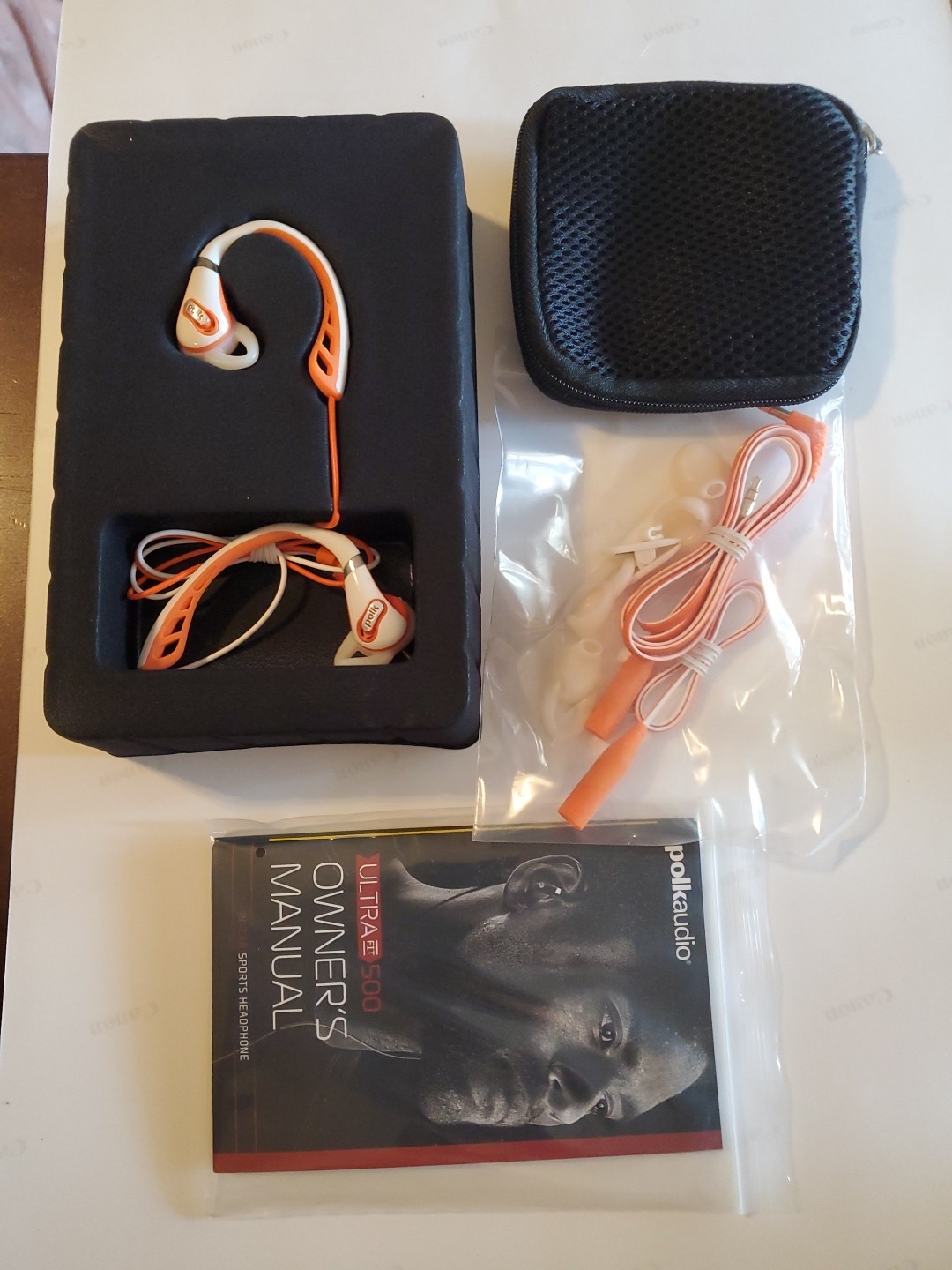 как выглядит Polk Audio UltraFit 500 Sports Headphones High End Digital Sound, White/Orange фото