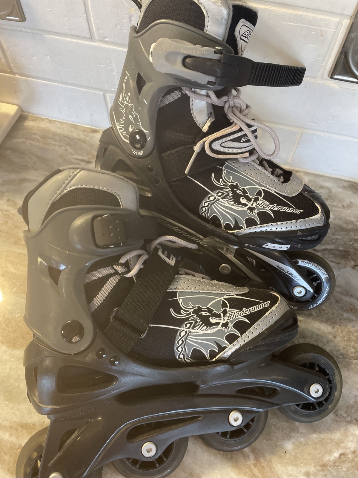 как выглядит Bladerunner Phoenix Rollerblades Size 1-4 Black/Silver Gently Used фото