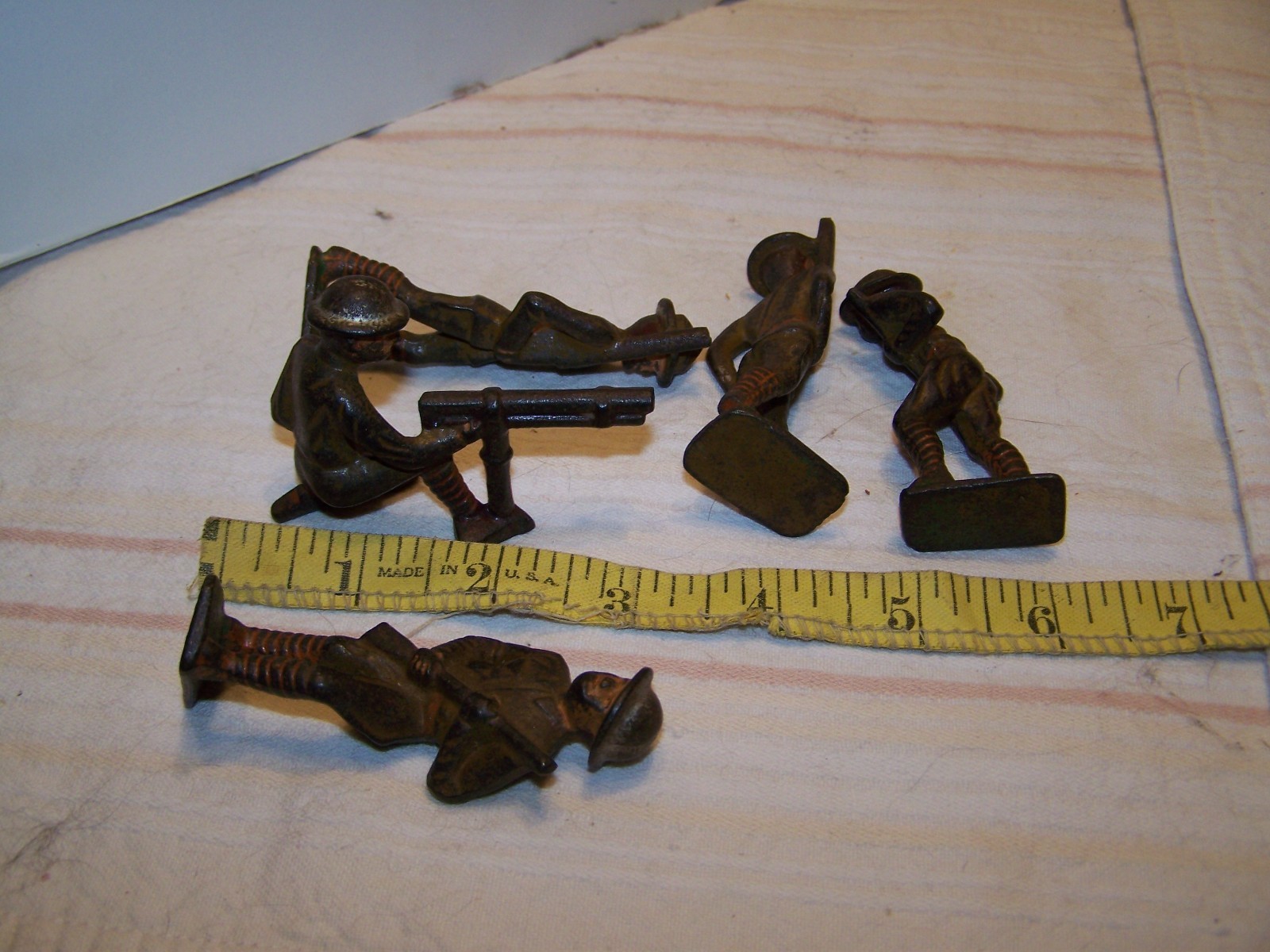 Antique Cast Iron Toy Soldiers, 5 Grey Iron Toy Soldiers Lot of 5