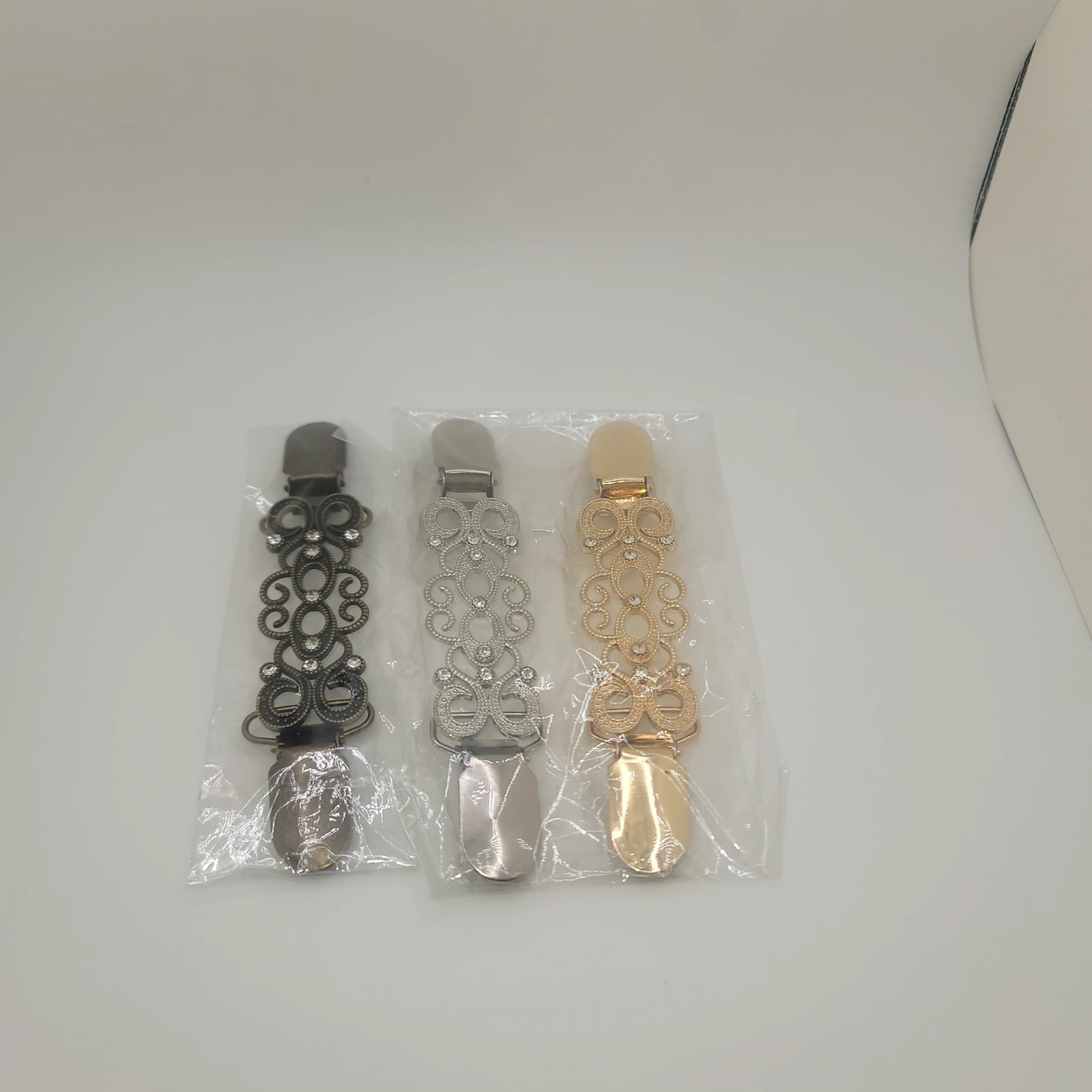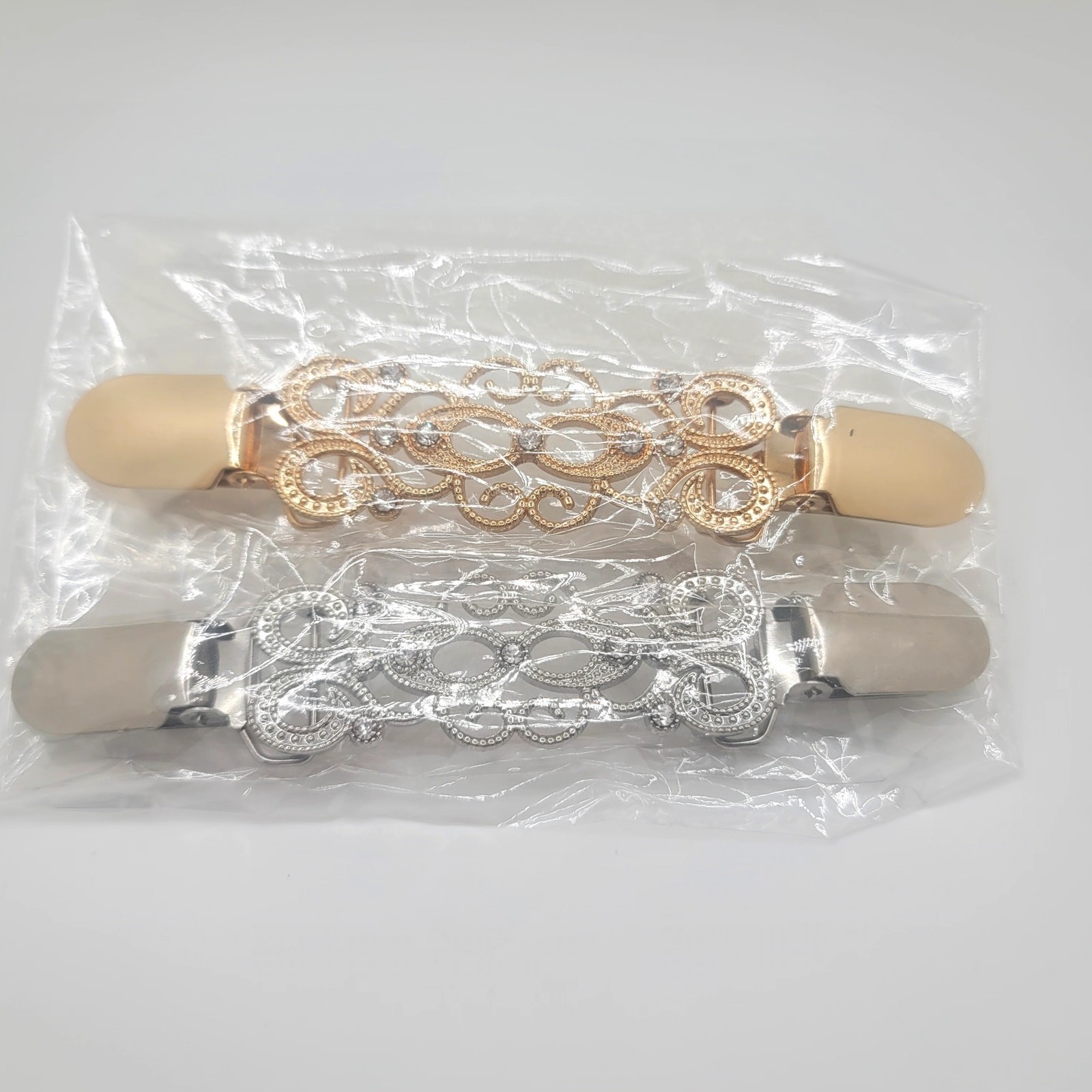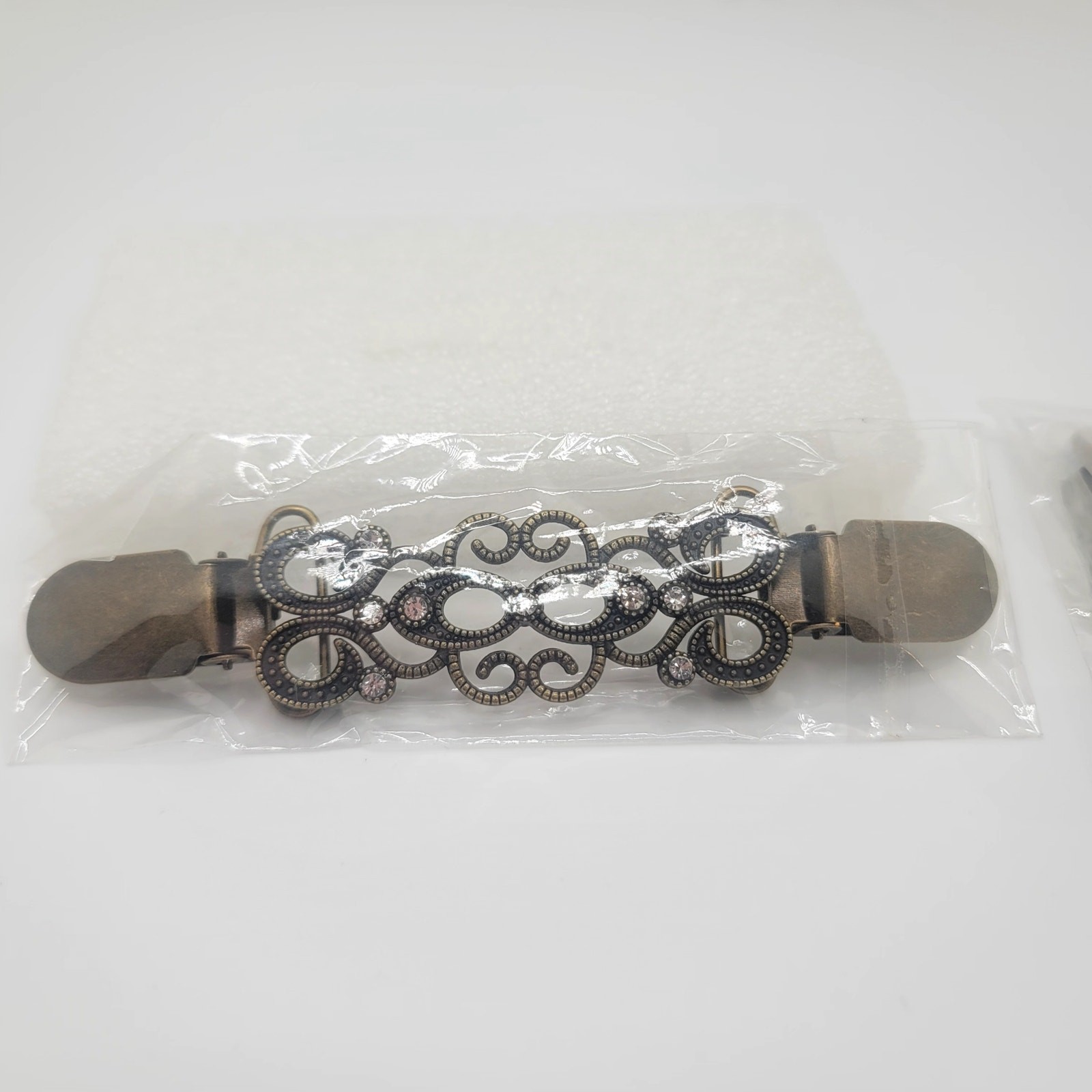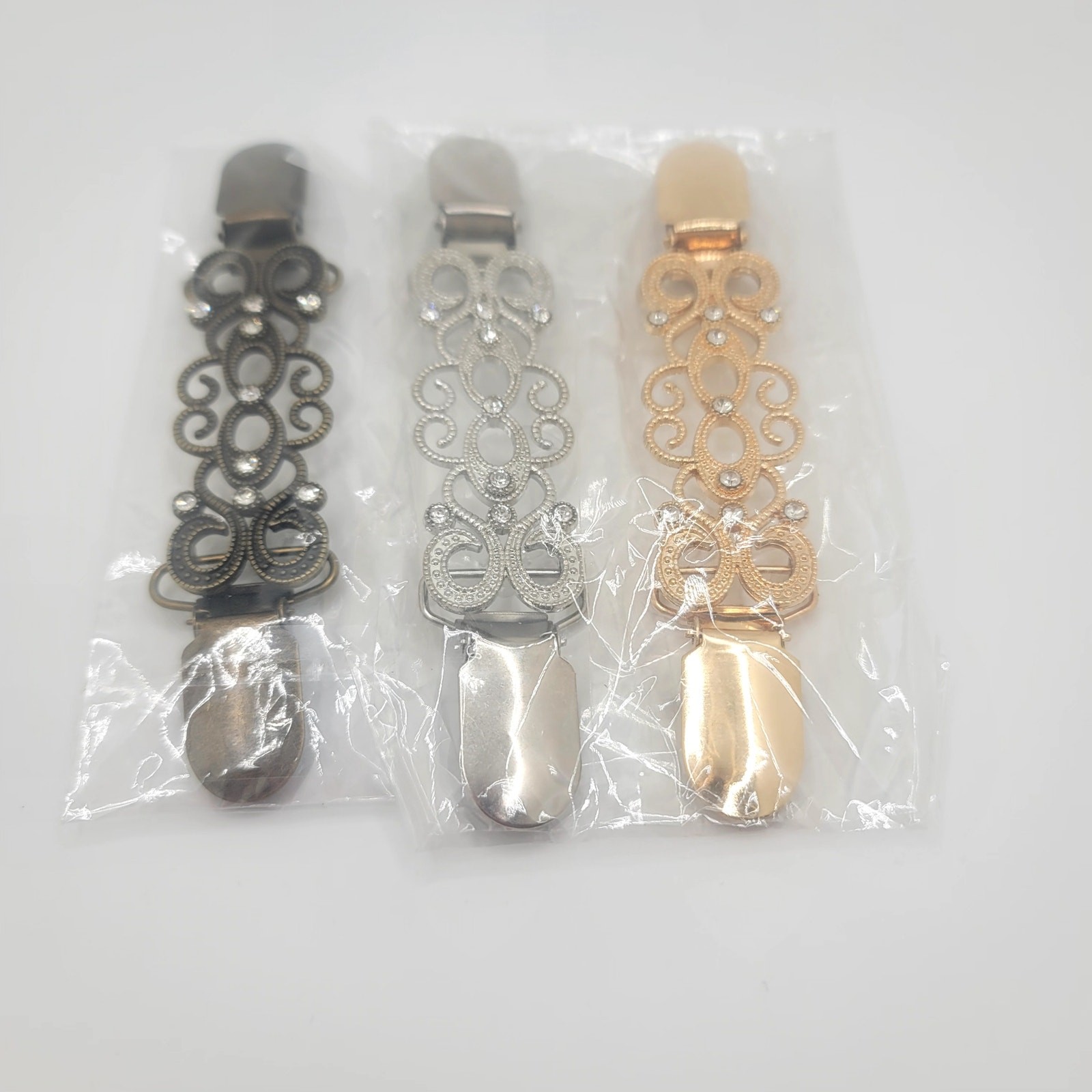 Set of 3 Rhinestone Filigree Sweater Clips, Silver, Gunmetal Rose Gold Tone