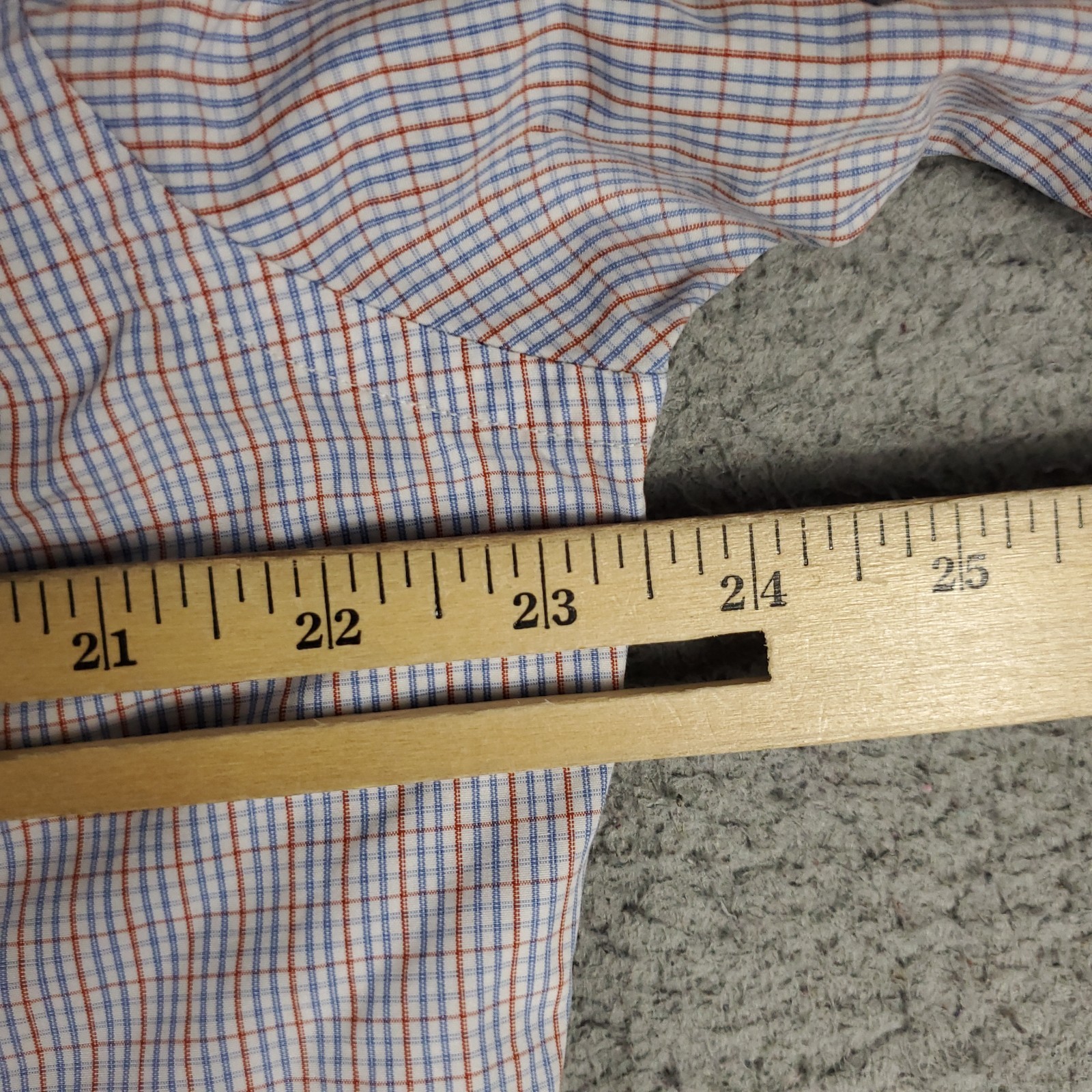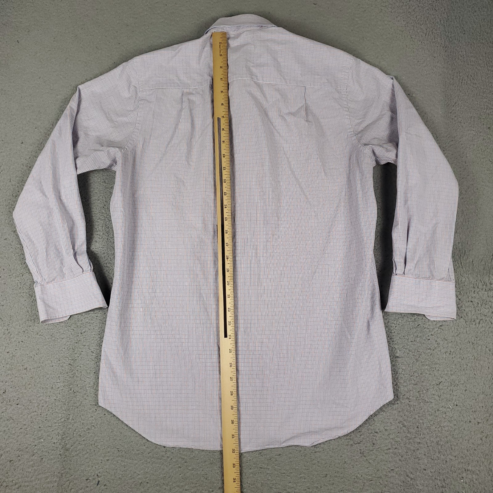 как выглядит David Donahue Shirt Mens 16.5 Blue Plaid Trim Fit Dress Button Up Long Sleeve фото
