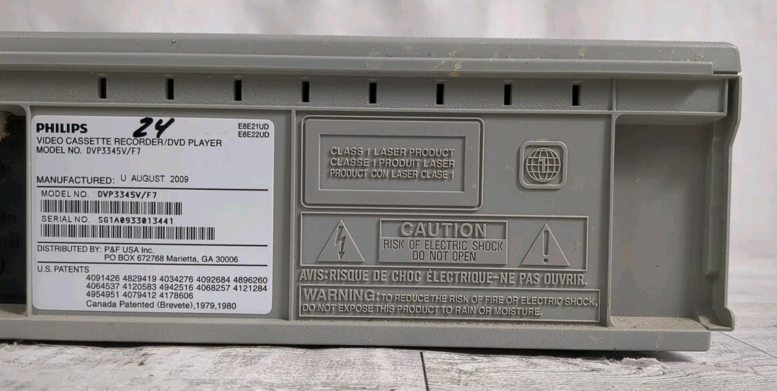 Philips DVP3345V DVD/VHS Player Combo w/o Remote - DVD Works - Has VCR Issues