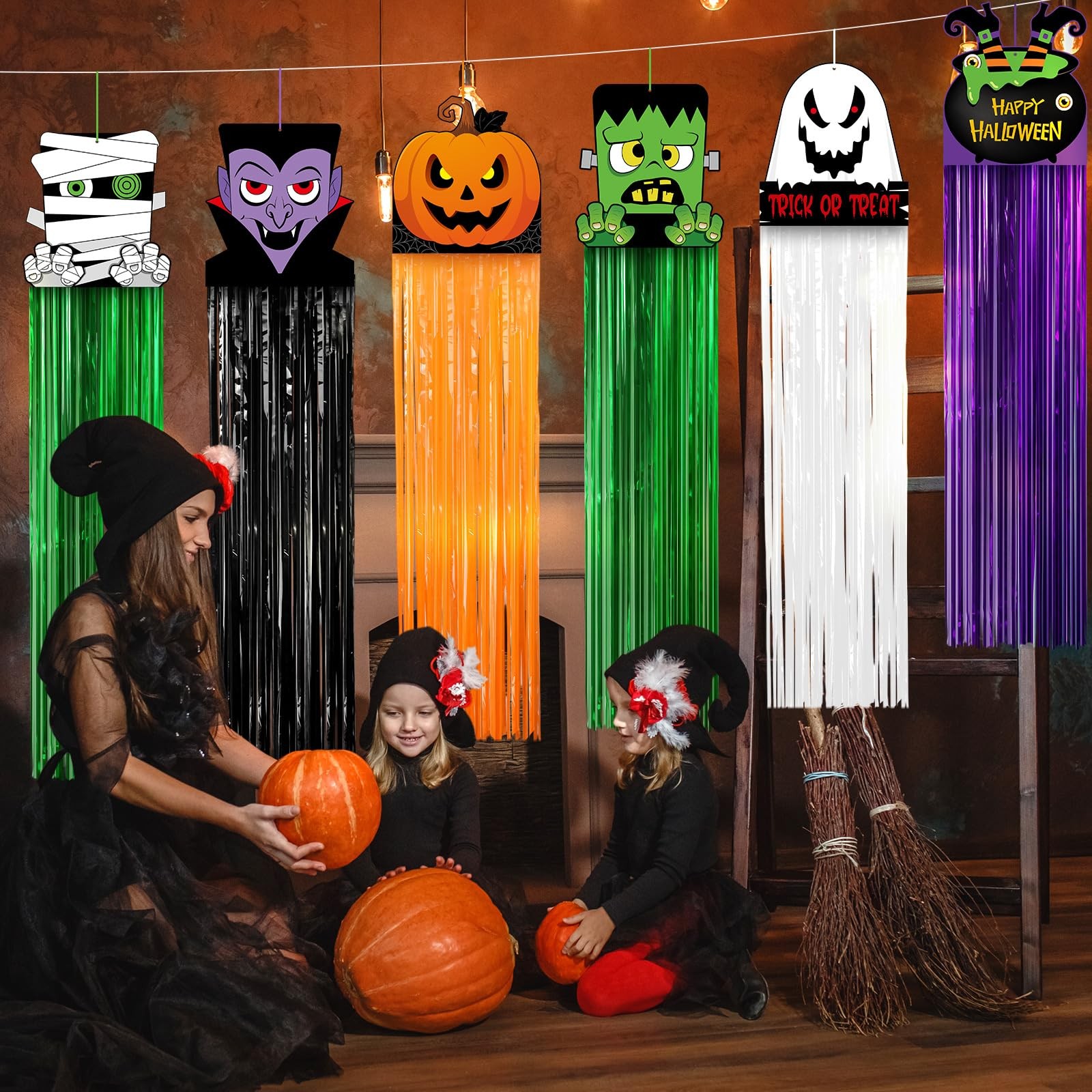 как выглядит 8 Pcs Halloween Ghost Hanging Decorations with Tassel 41 Inch Witch Pumpkin P... фото