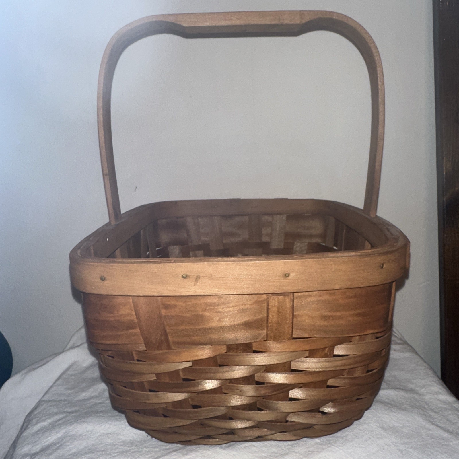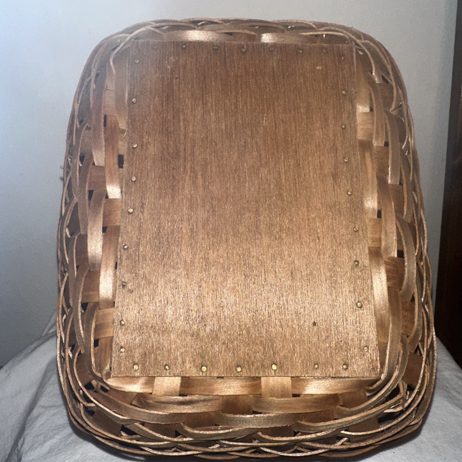 • Unbranded Woven Medium Sized Basket W/ Handle, Wooden Bottom. See Photos