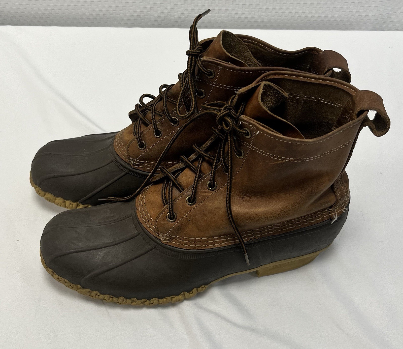 LL Bean Men's Brown Leather Unlined Mid Calf Bean Boots Size 13
