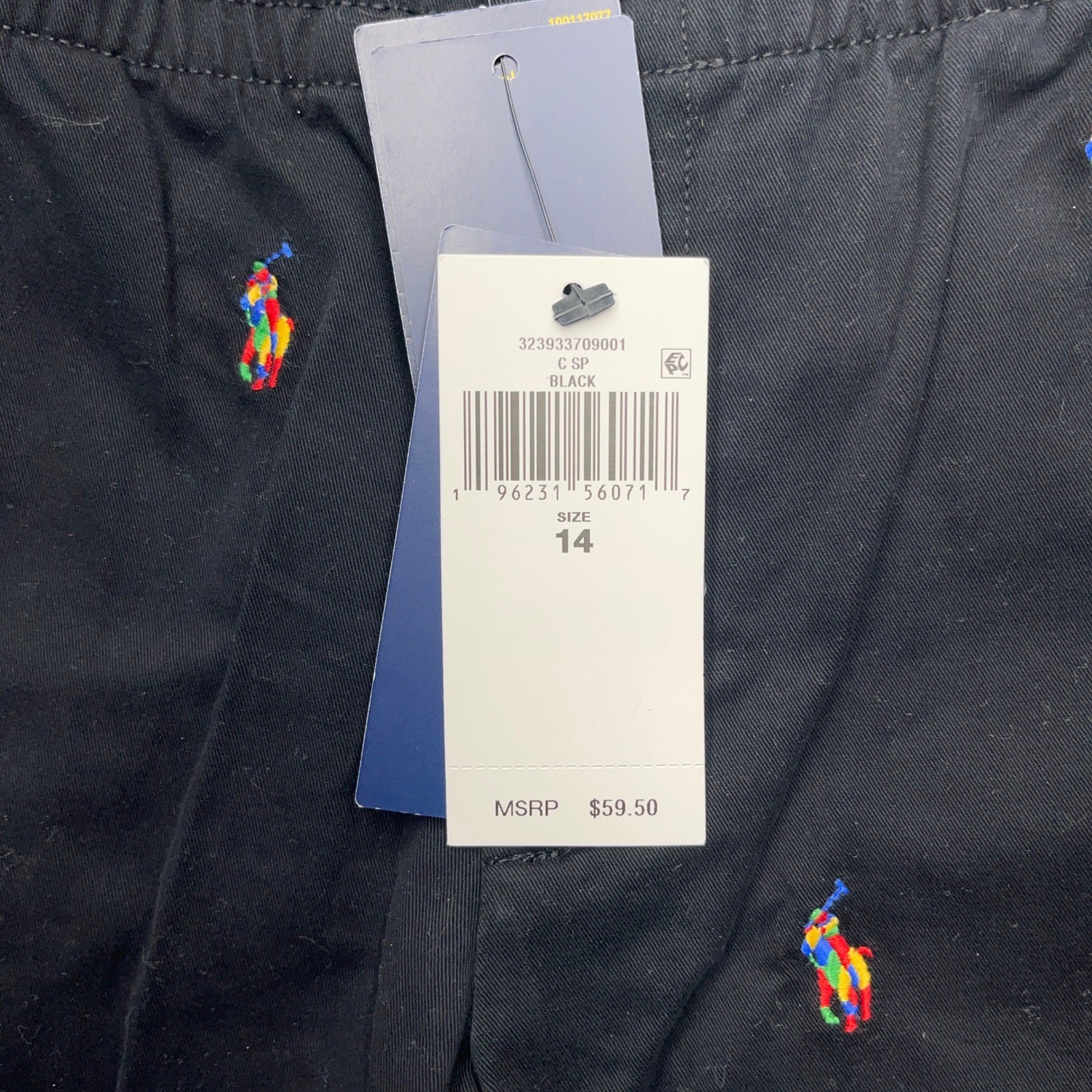 NEW Polo Ralph Lauren Kids Black Embroidered Pony All Over Shorts Size 14