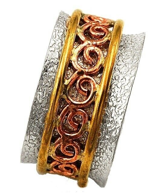Three Tone Meditation Spinner 925 Sterling Silver Band Ring Sz 7 B7-5