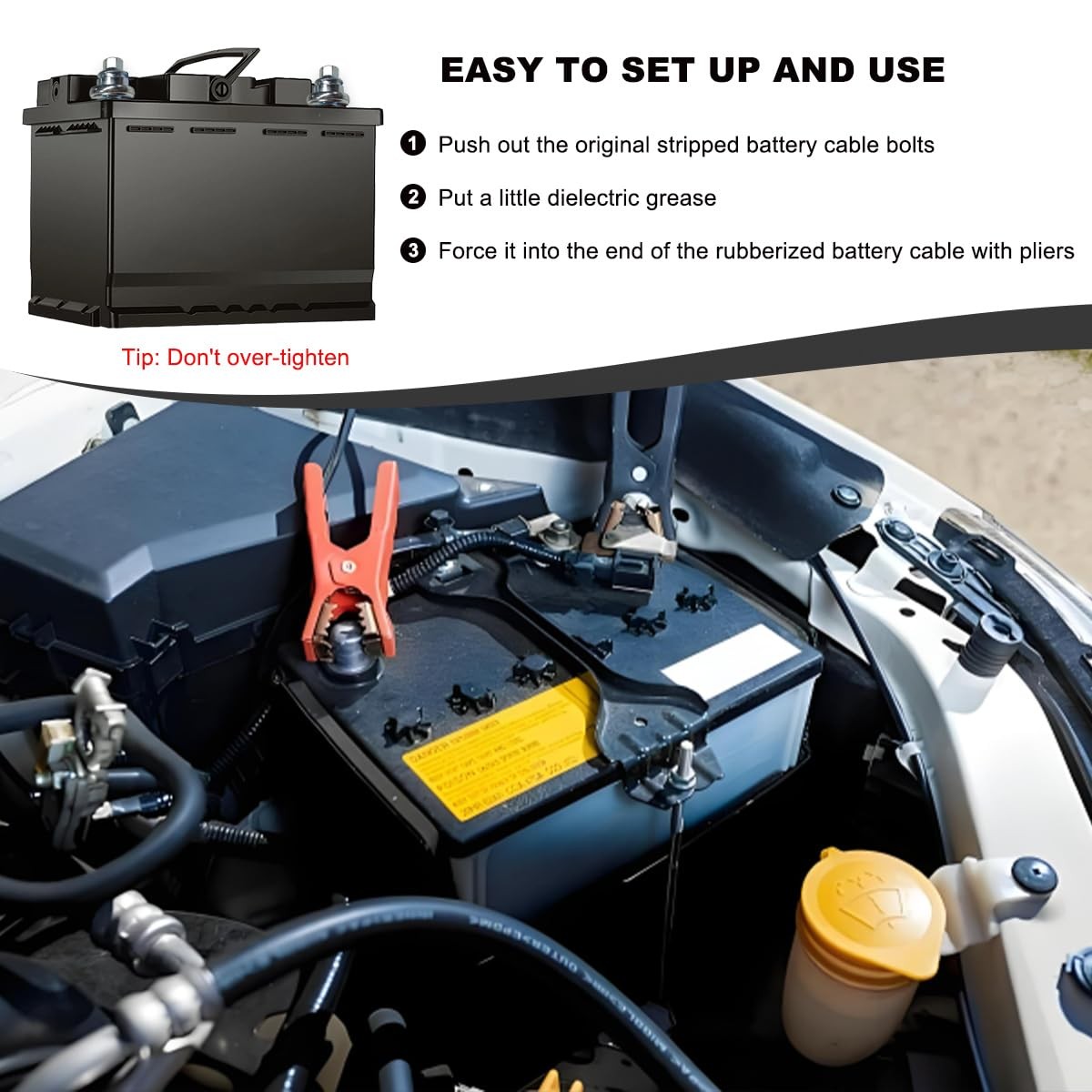 4 PCS Side Post Battery Terminal Bolts, 3/8-16 Stud Thread Extender Screw for...