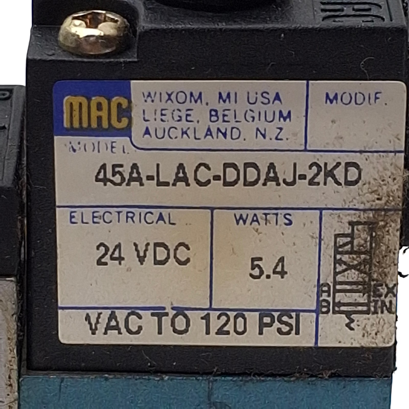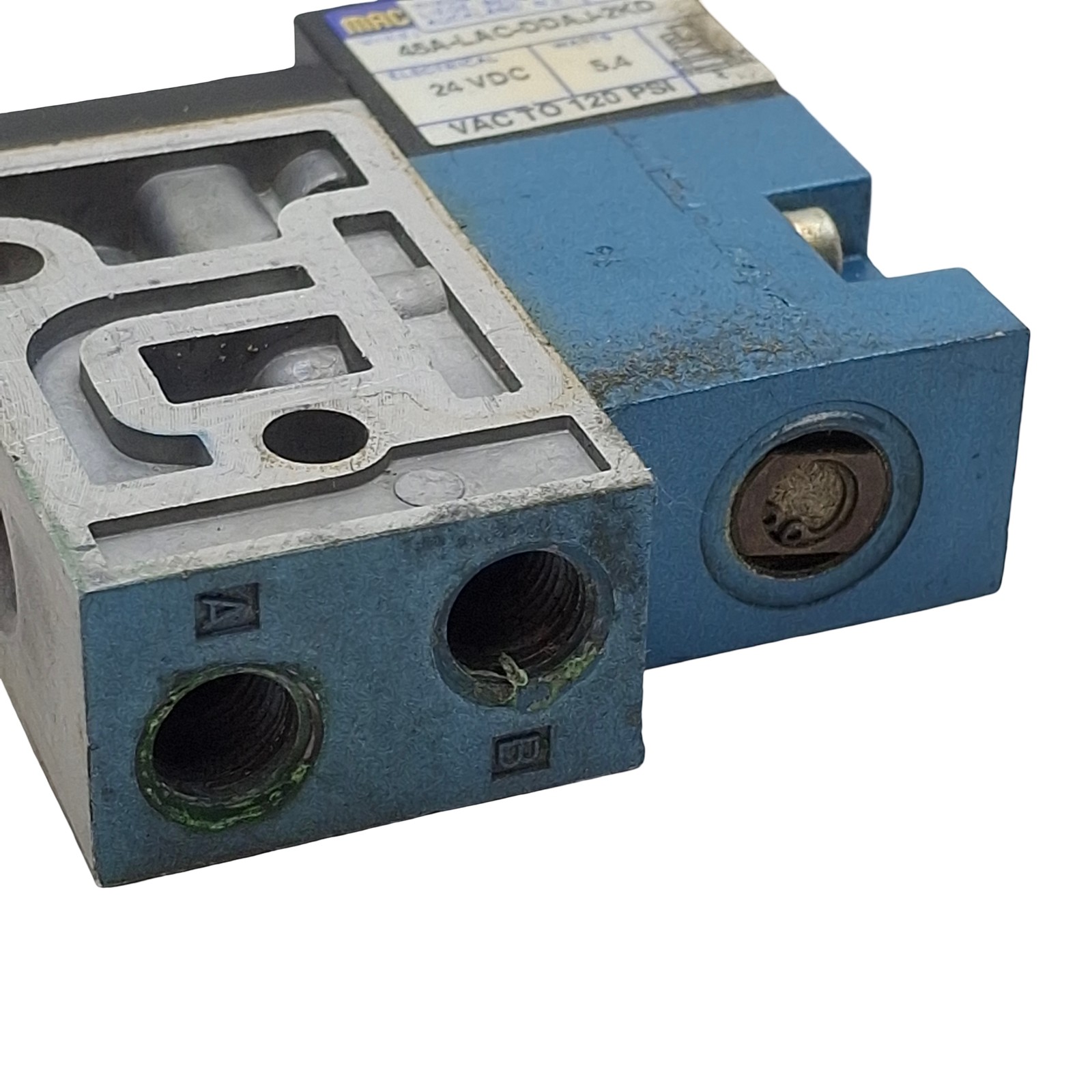 • Mac 45A-LAC-DDAJ-2KD Solenoid Valve, 4/2-Way, 1/8in NPT, Vac-120psi, 24VDC Coil