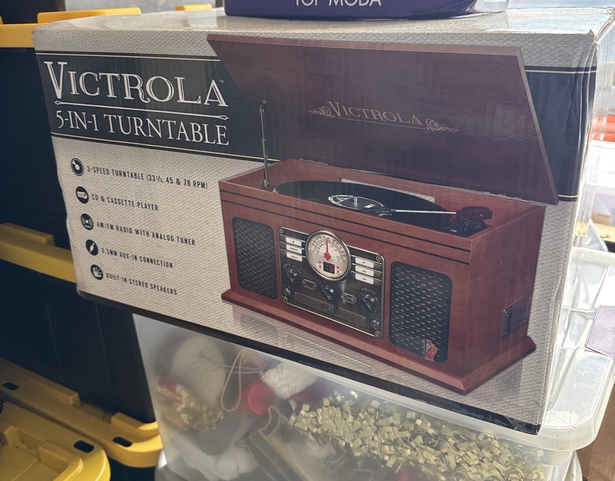 Victrola 5-In-1 Turntable Nostalgic CD, Record, Cassette Player, AM/FM RADIO AUX