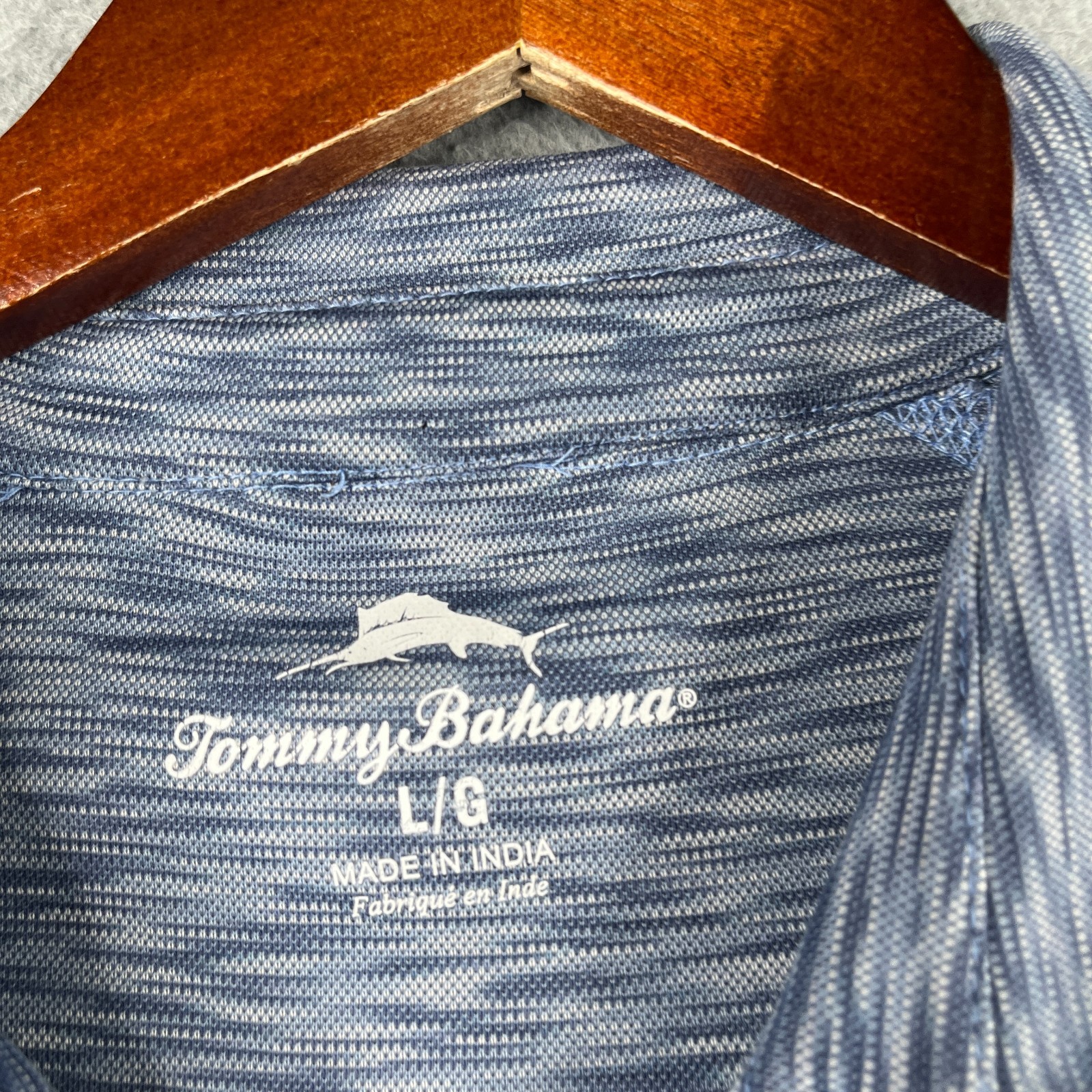 как выглядит Tommy Bahama Polo Shirt Mens Large Navy Blue Heather Performance Stretch фото