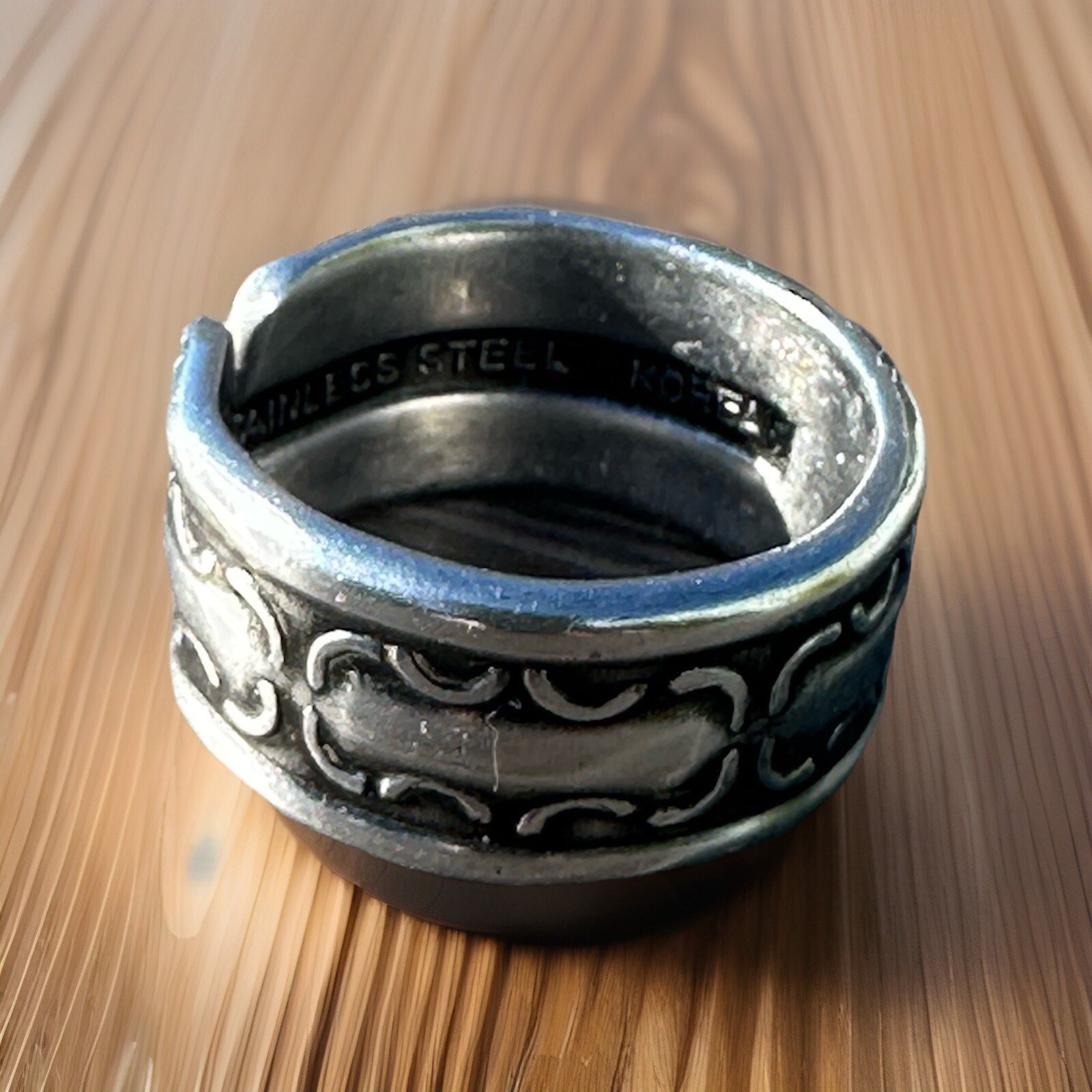 как выглядит Vintage Retro Spoon Ring Stainless Steel Repurposed Flatware Band Size 12.75 фото