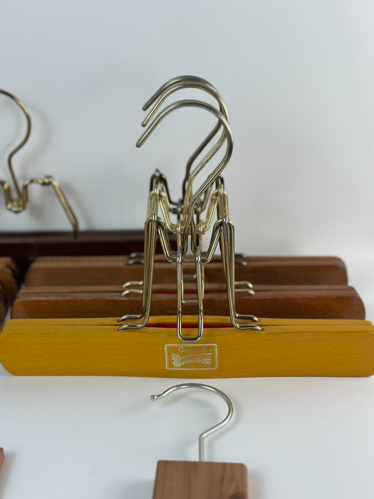 как выглядит Vintage West Germany Wooden Hangers Lot 10 Grapewell Birnbaum Cedar Closet Block фото