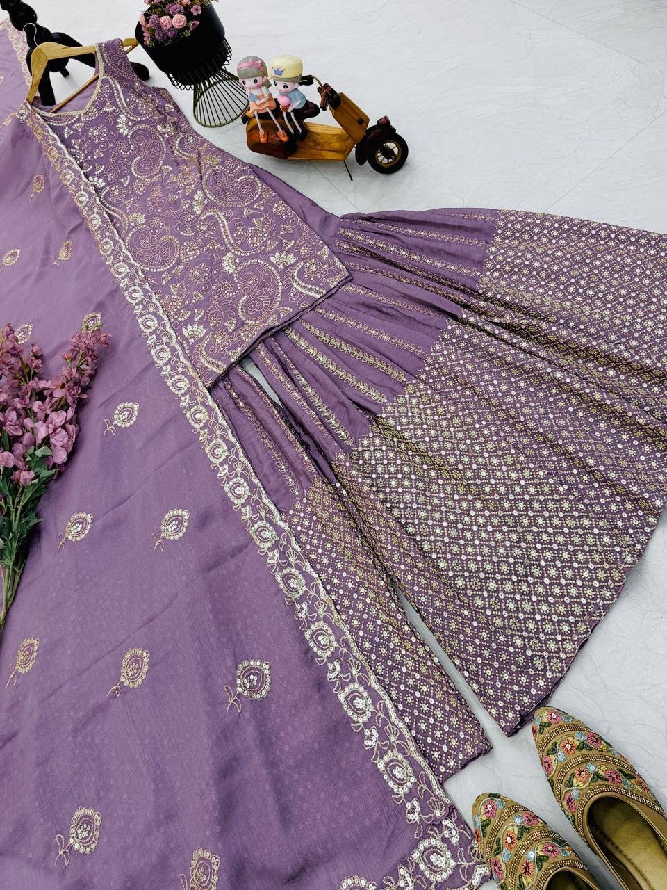 New Presenting Chinon Silk Purple Top Palazzo With Dupatta For Women Wear