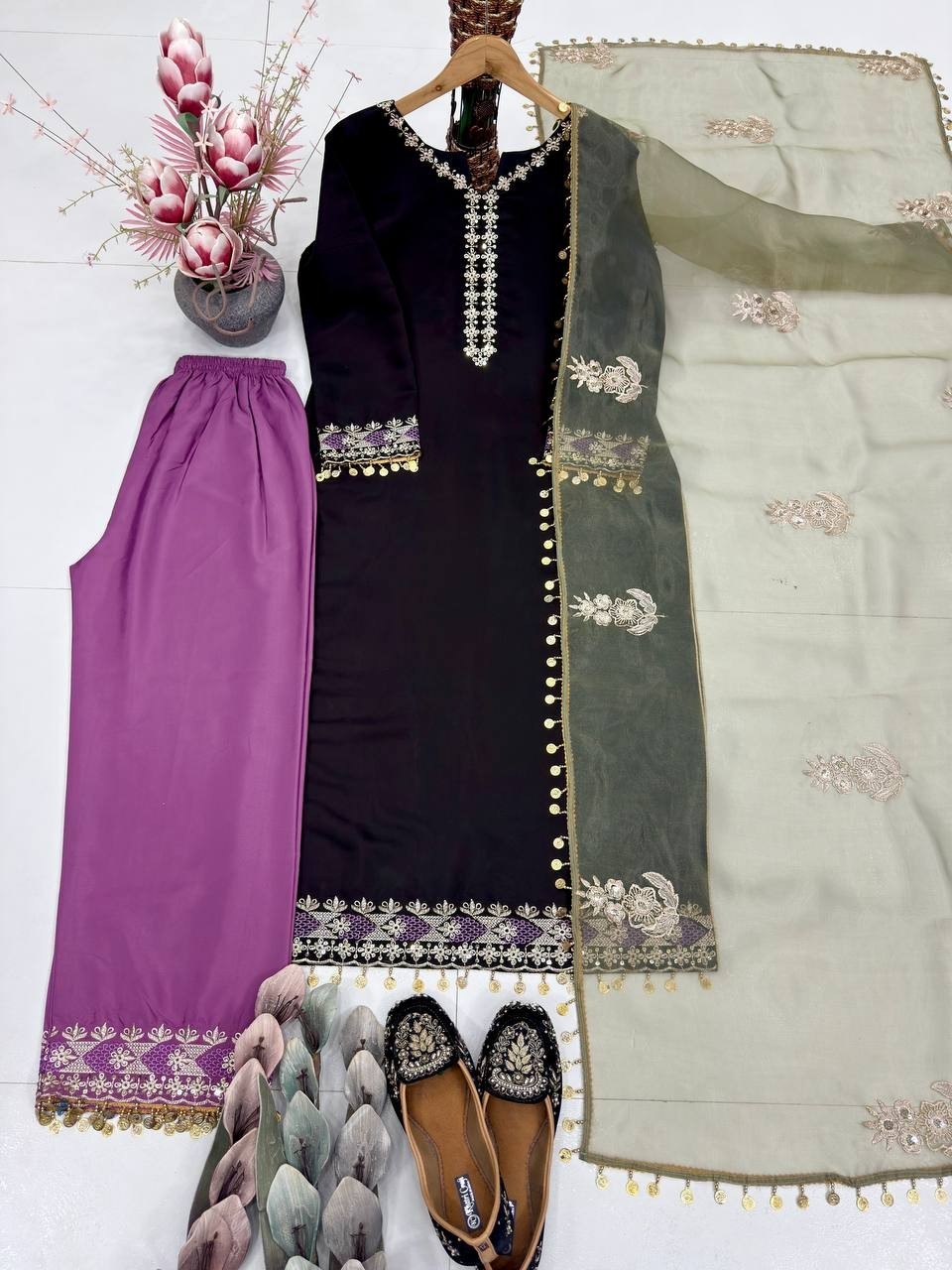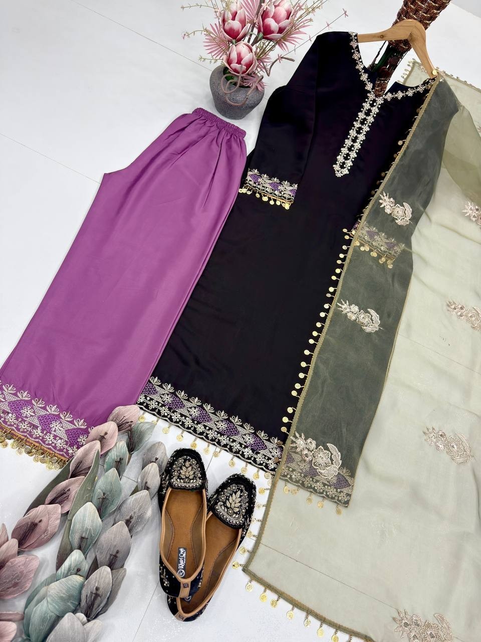 New Presenting Roman Silk Black Top Palazzo With Dupatta For Function Wear