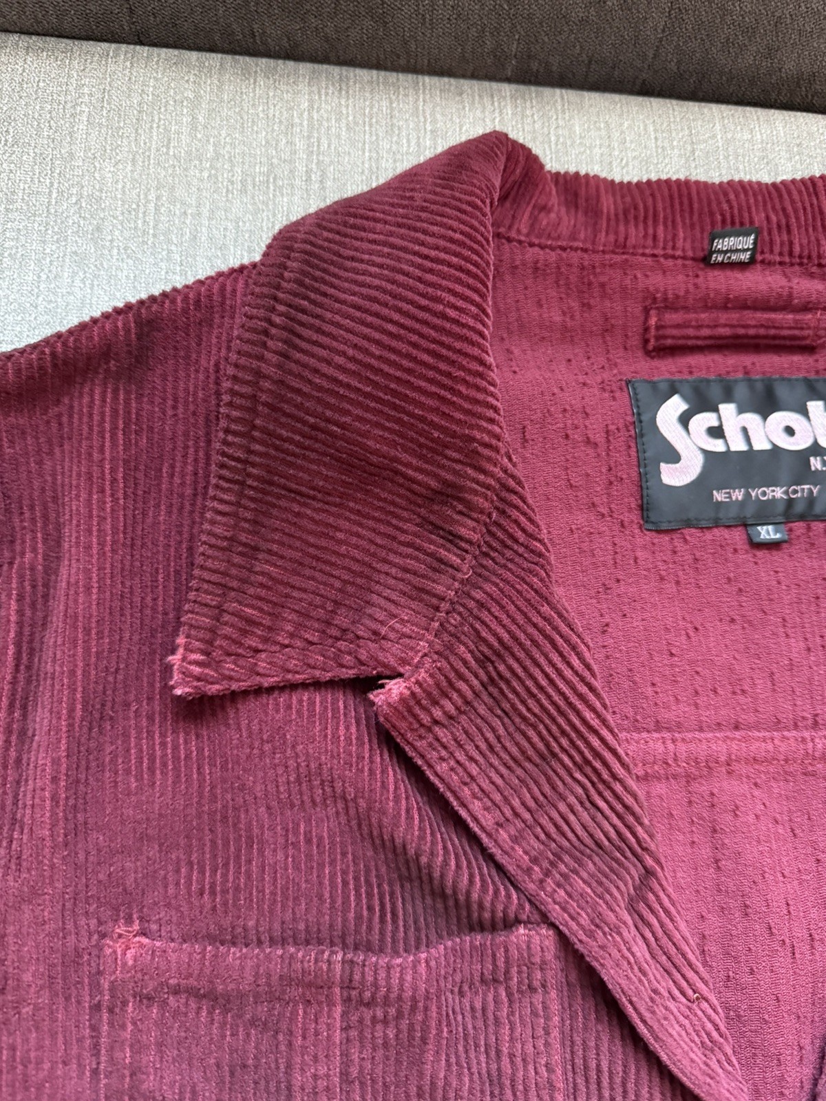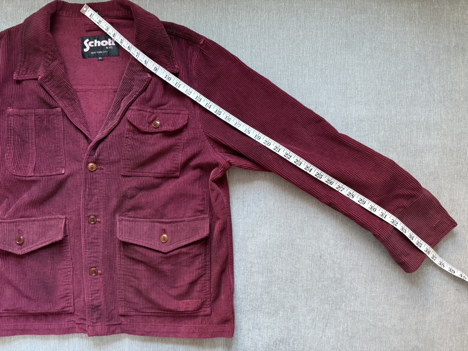как выглядит Vintage Schott N.Y.C. Maroon Corduroy Chore Jacket Size XL 4 Pocket Front Blazer фото