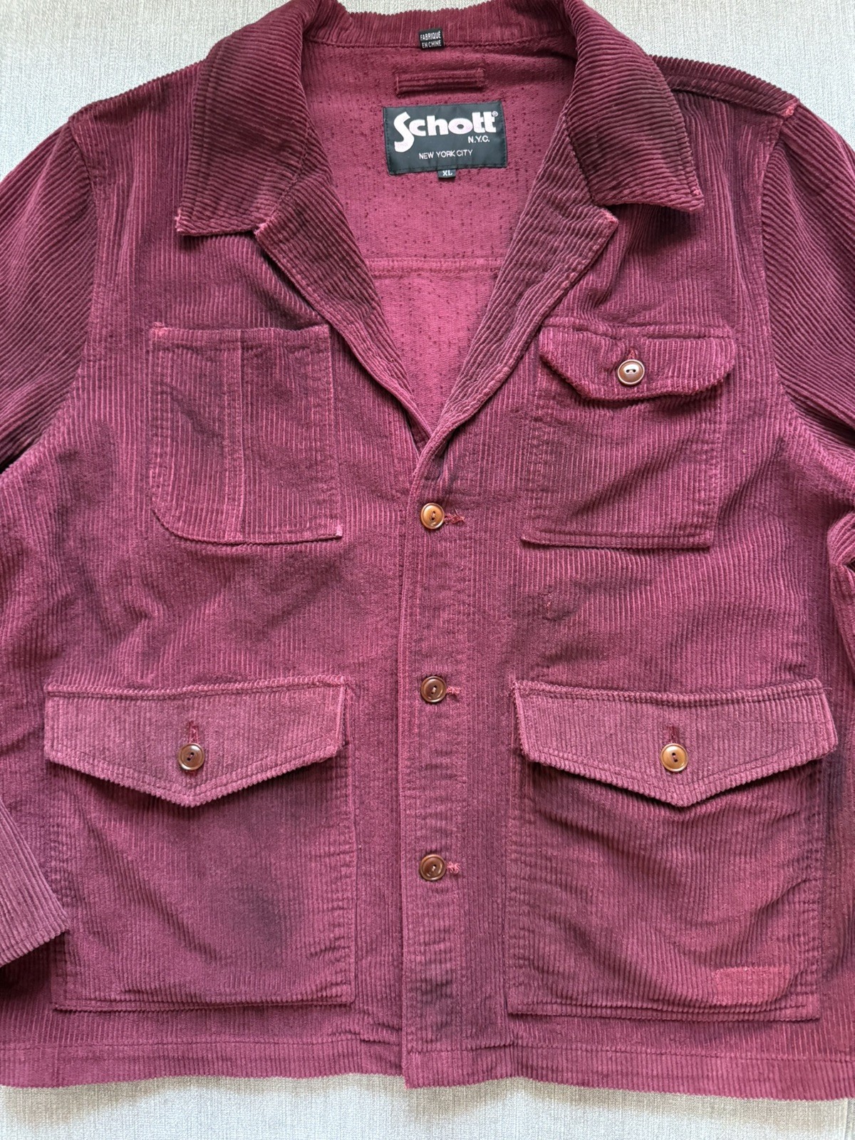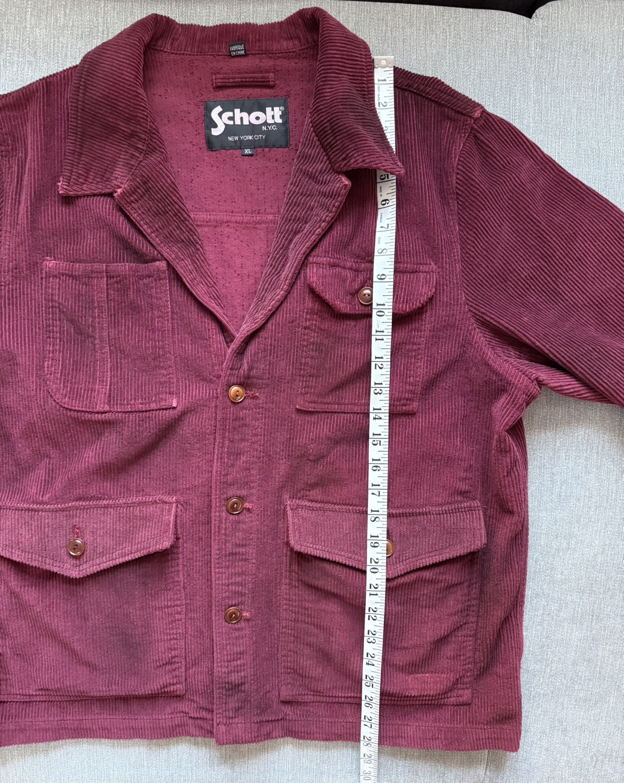 Vintage Schott N.Y.C. Maroon Corduroy Chore Jacket Size XL 4 Pocket Front Blazer
