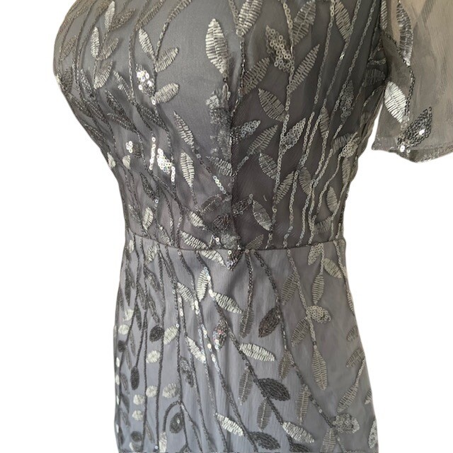 Gray Sequin Leaf Embroidered Mesh Mermaid Formal Gown Size 6 Gala Wedding Guest