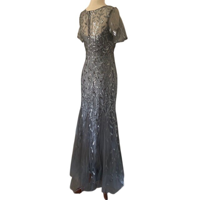 как выглядит Gray Sequin Leaf Embroidered Mesh Mermaid Formal Gown Size 6 Gala Wedding Guest фото