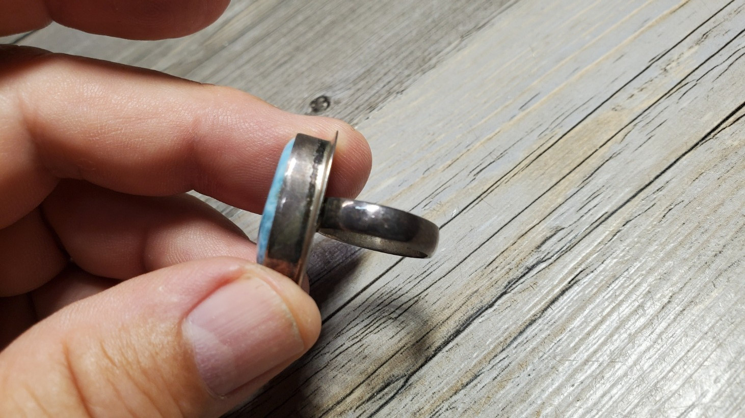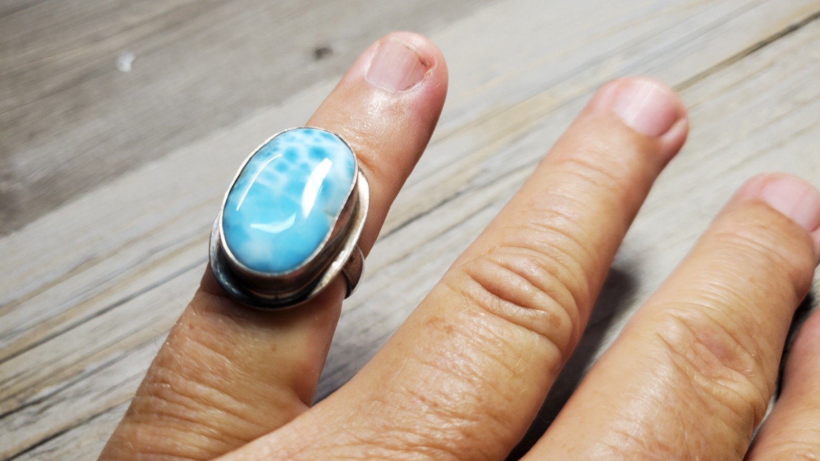 как выглядит 925 Sterling Silver Natural Larimar Pectolite Ring Size 7 Stone 8 CT 9.9g signed фото
