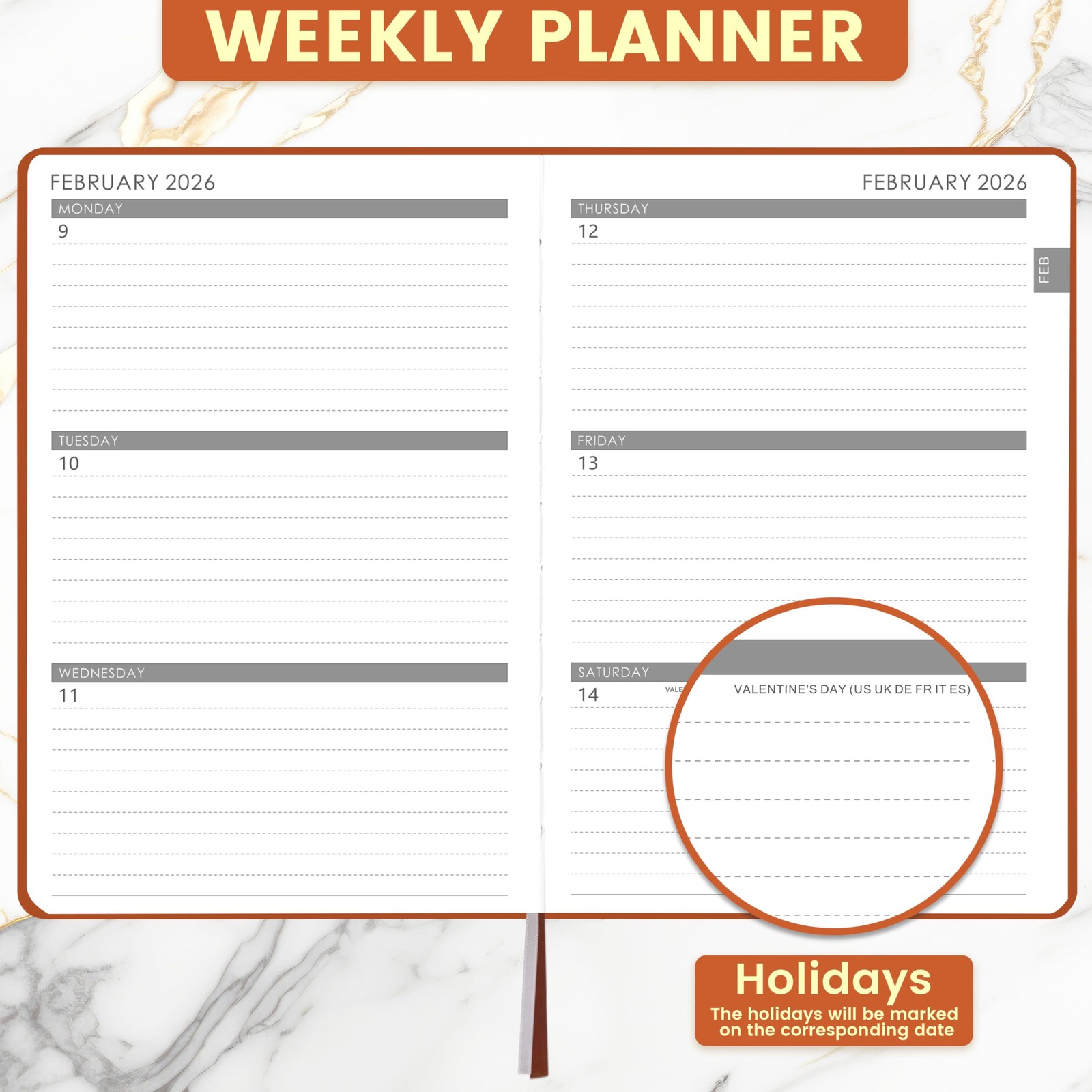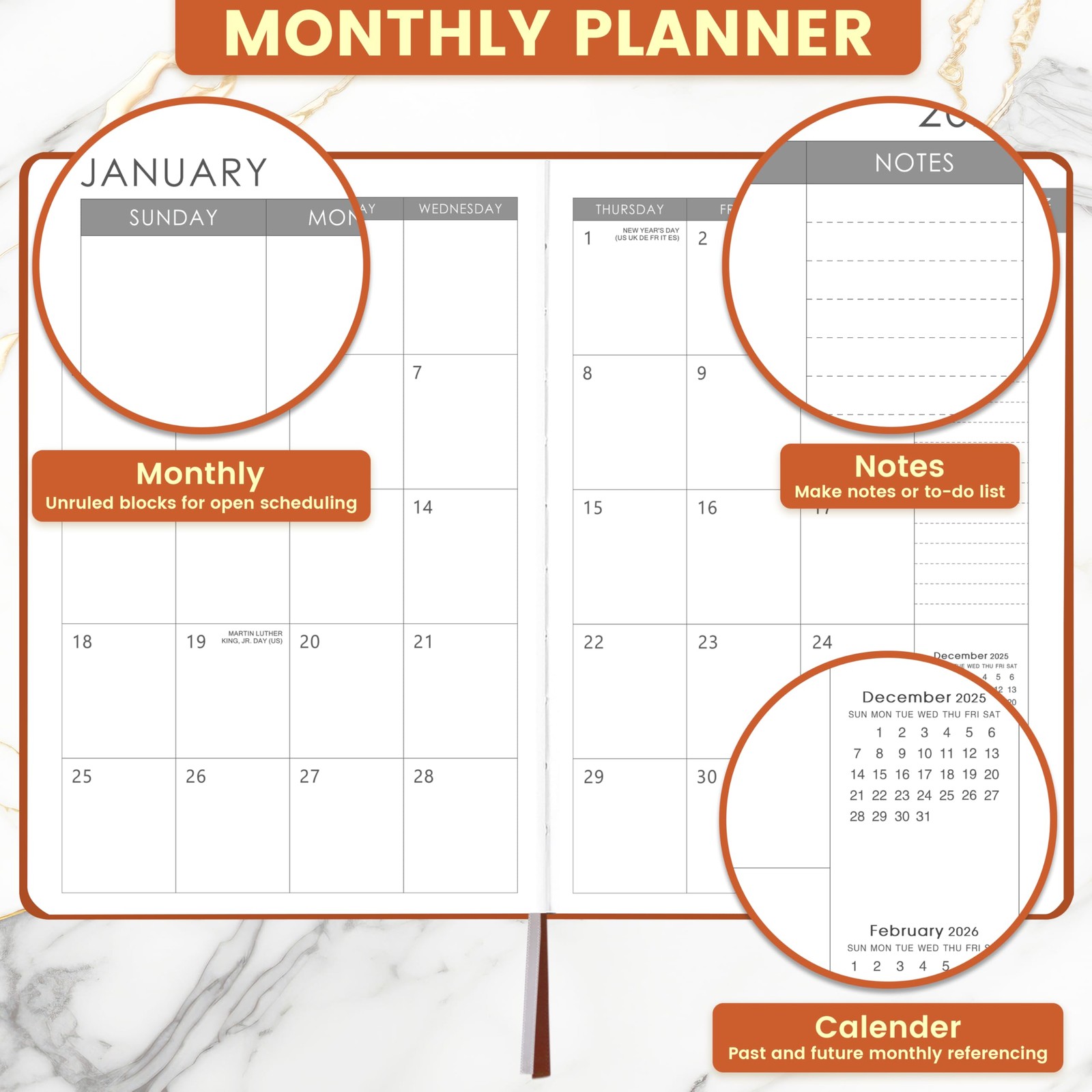2026 Weekly Monthly Planner 5.7x8.4 Faux Leather Brown