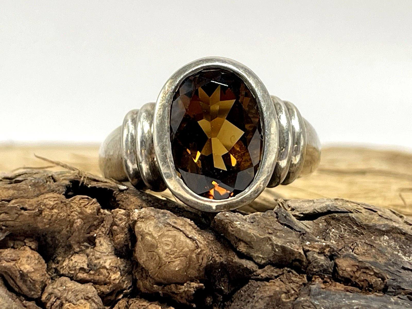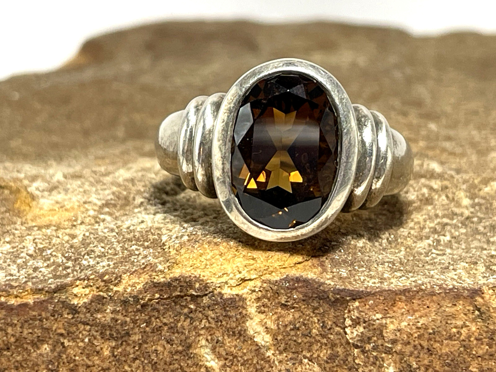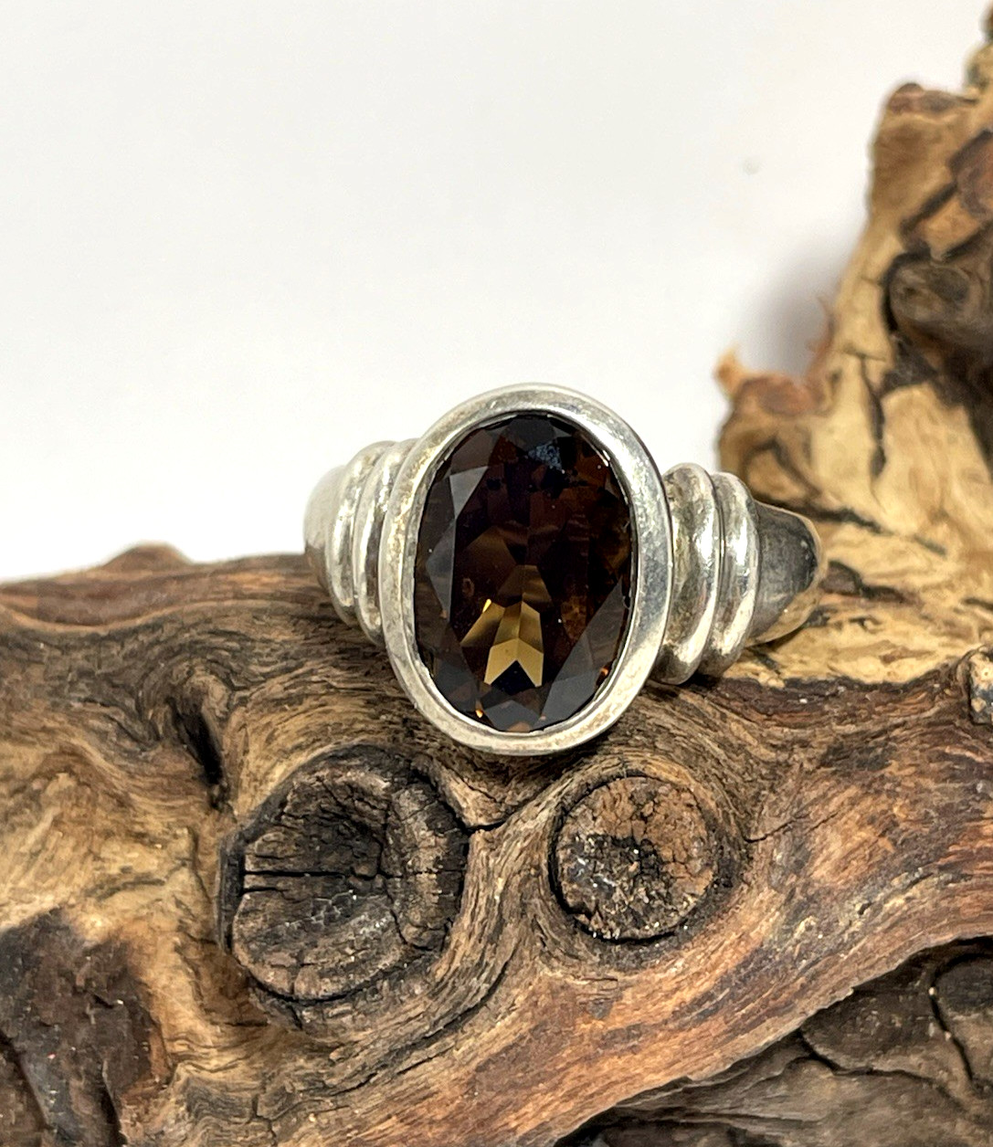925 Sterling Silver Smoky Quartz Statement Ring Sz 9.5 6.86g