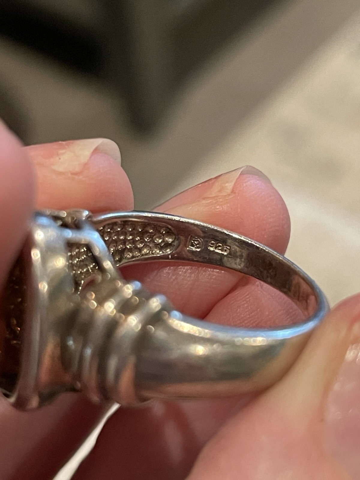 как выглядит 925 Sterling Silver Smoky Quartz Statement Ring Sz 9.5 6.86g фото