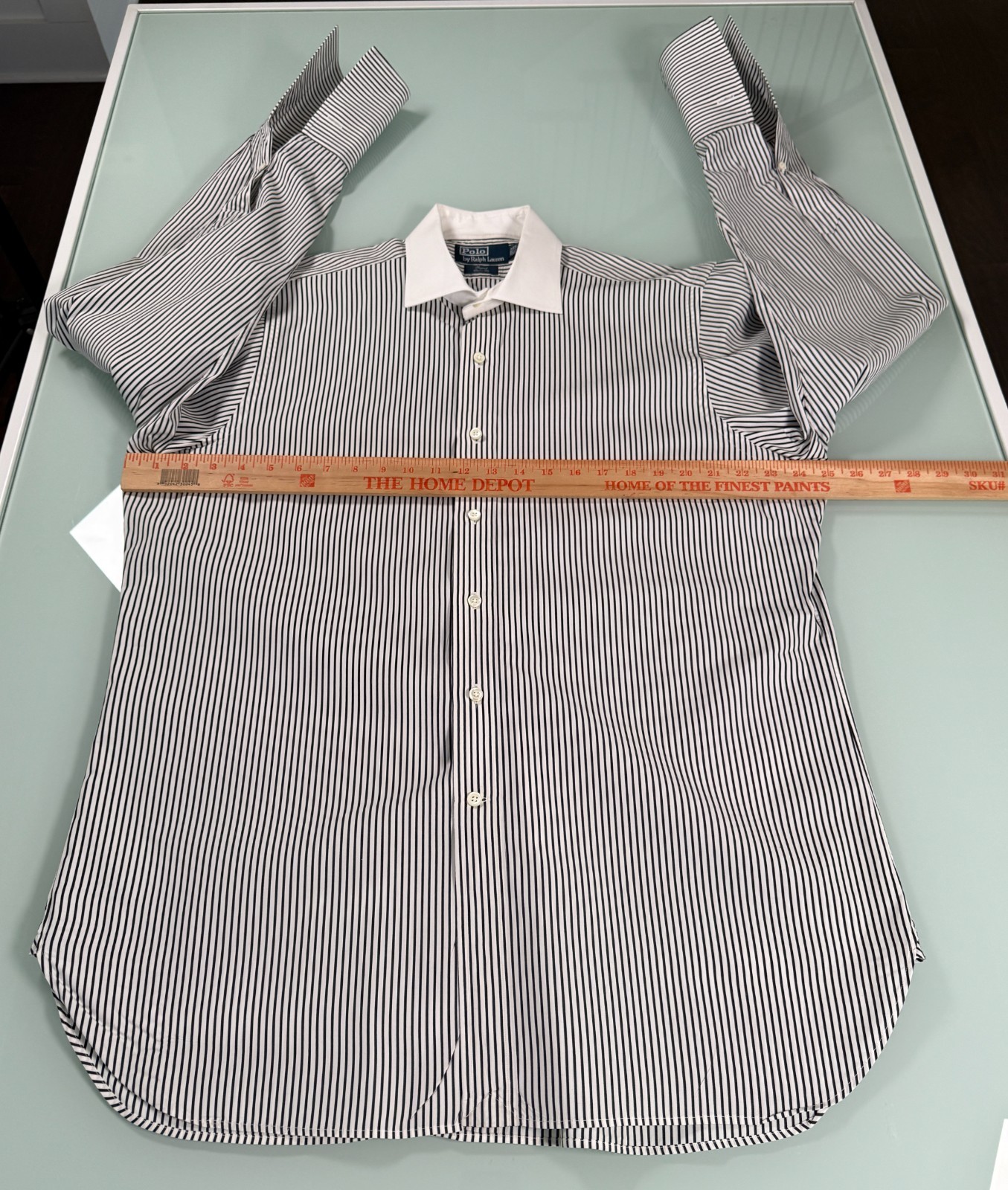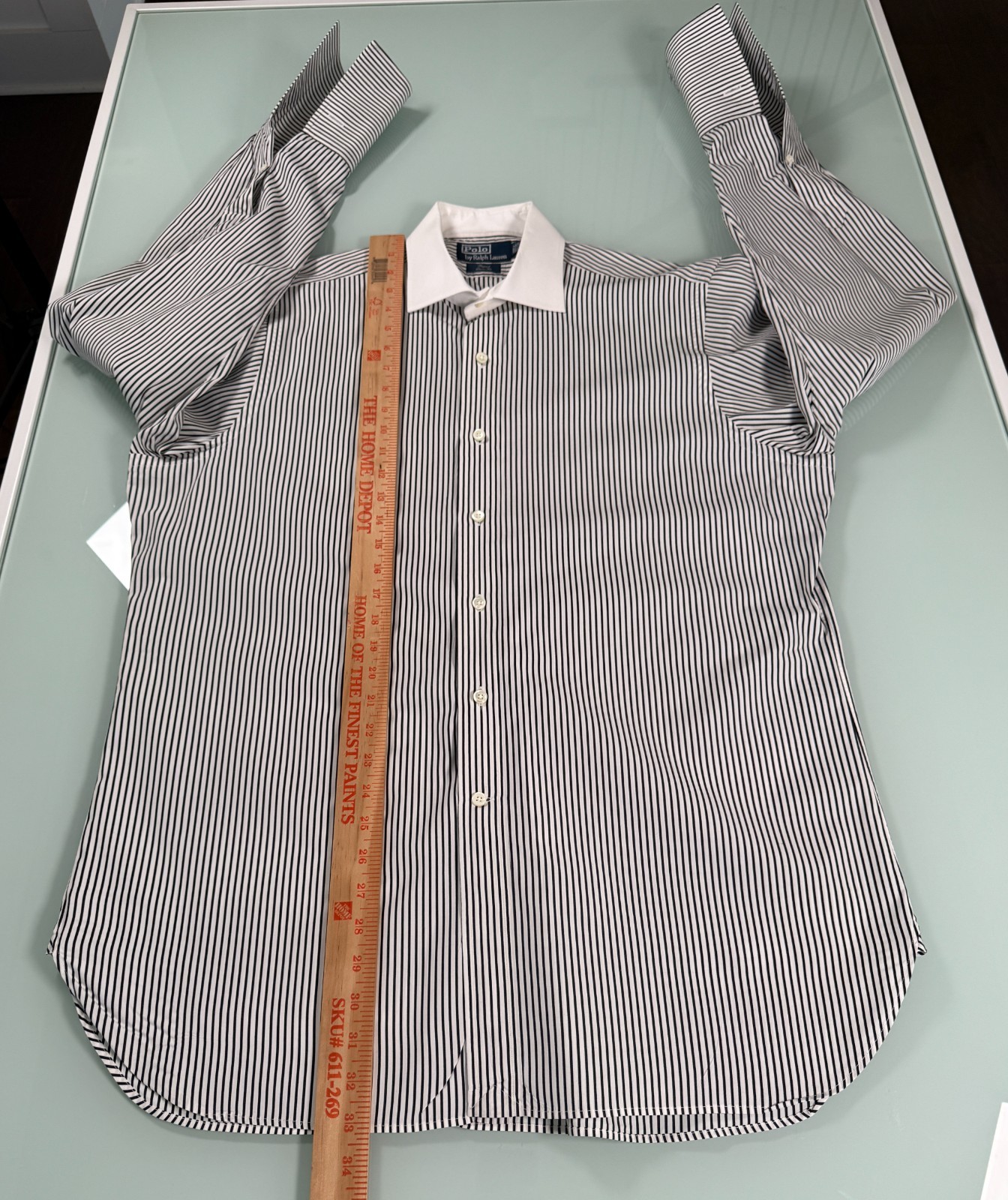 как выглядит Polo Ralph Lauren Mens 16.5 Regent Classic Fit Dress Shirt B W Stripe Preppy фото