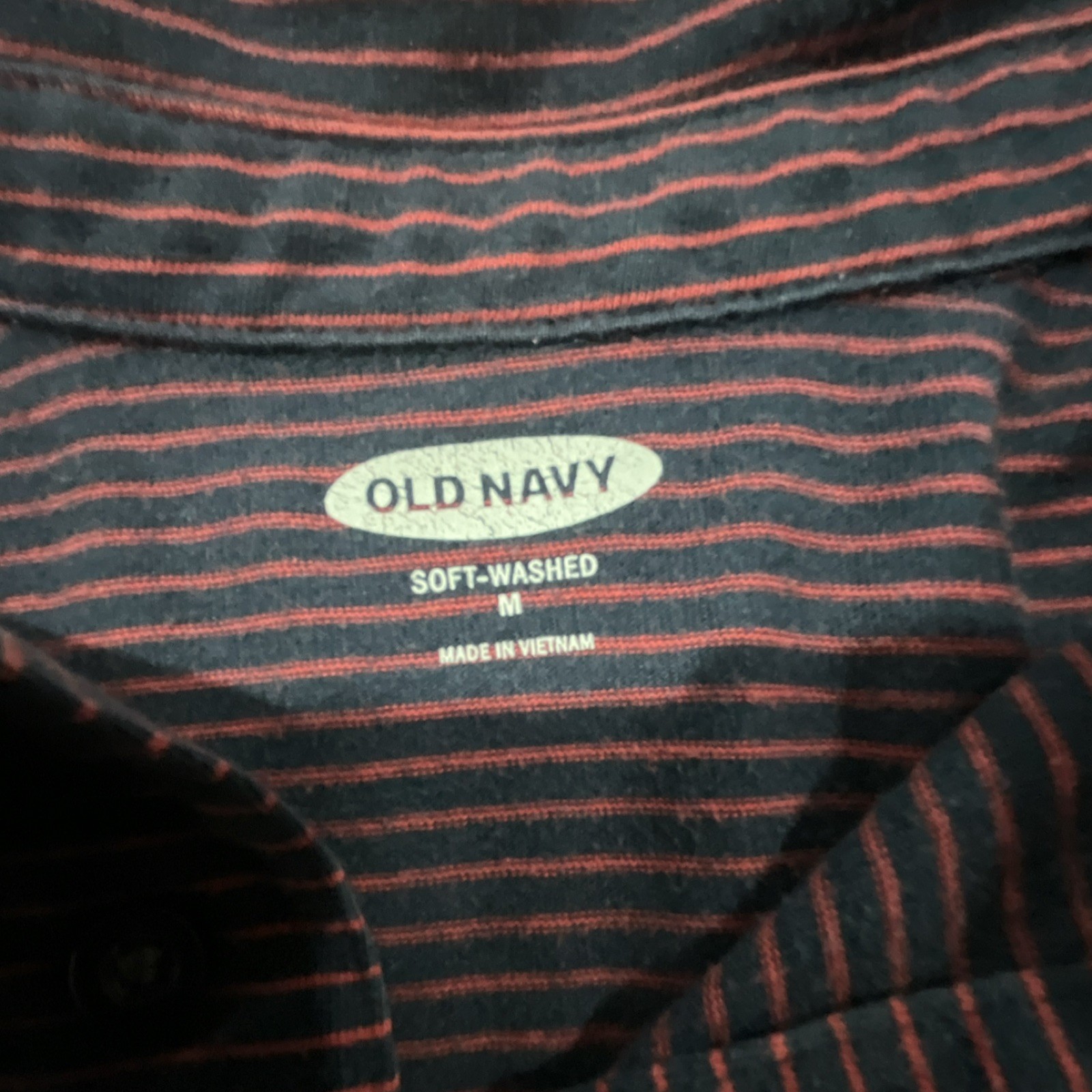 Old Navy Men's Striped Soft-Washed Polo Shirt Black Red Medium Short Sleeve
