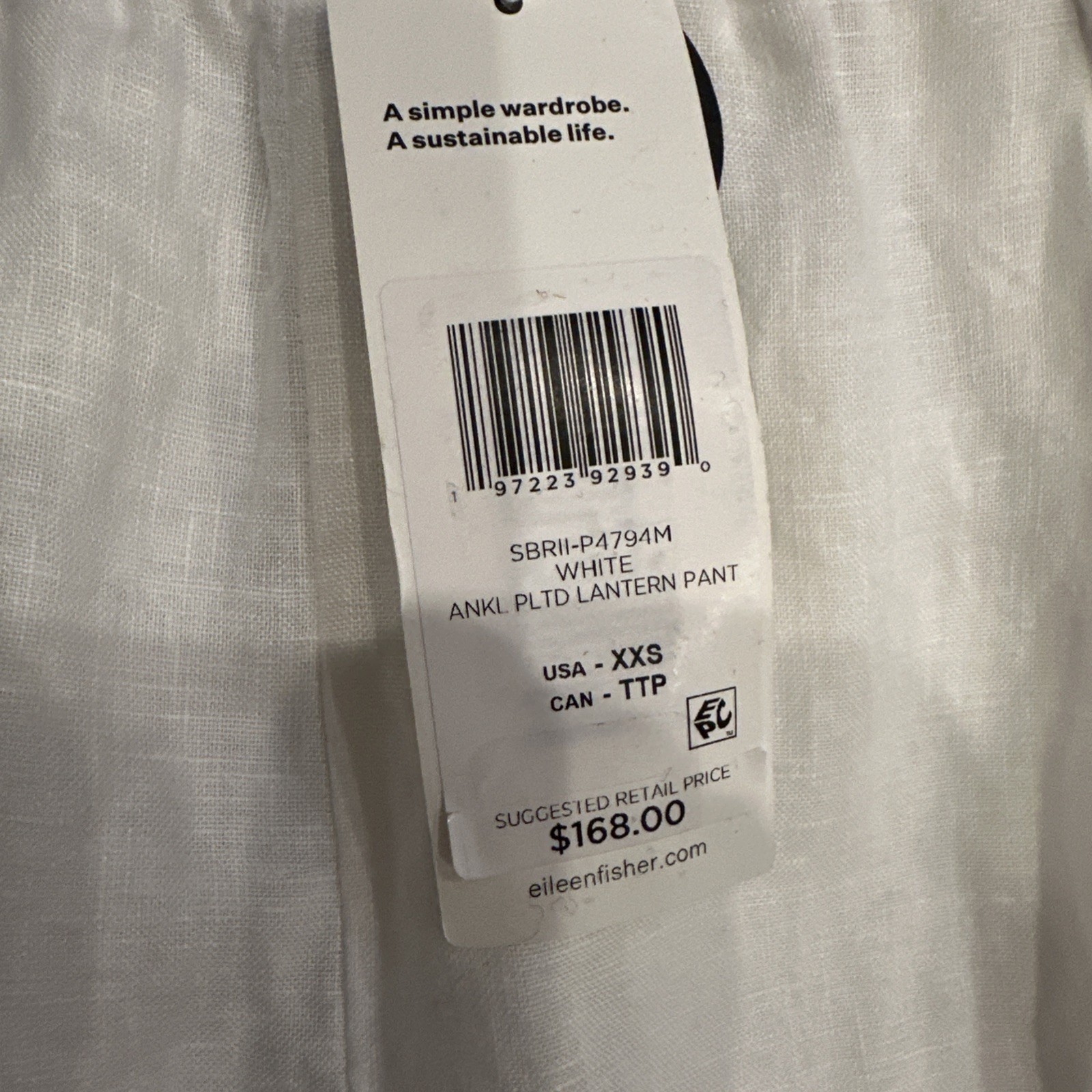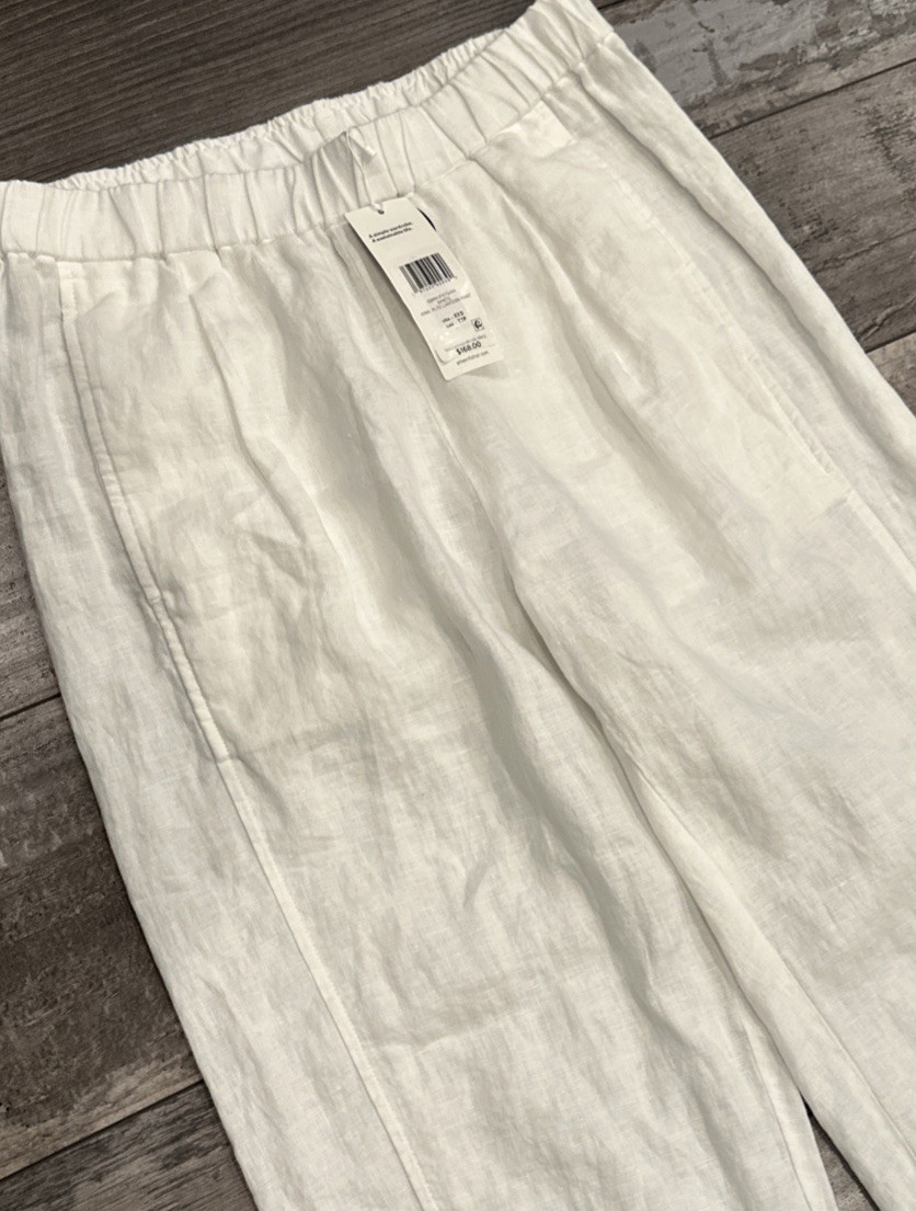 как выглядит NWT Eileen Fisher Organic Linen Ankle Pleated Lantern Pant SzXXS White фото