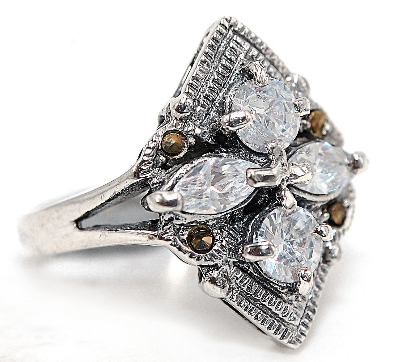 как выглядит 1CT White Topaz Swiss Marcasite 925 Sterling Silver Ring Sz 6,7,8,9 ZB6 фото