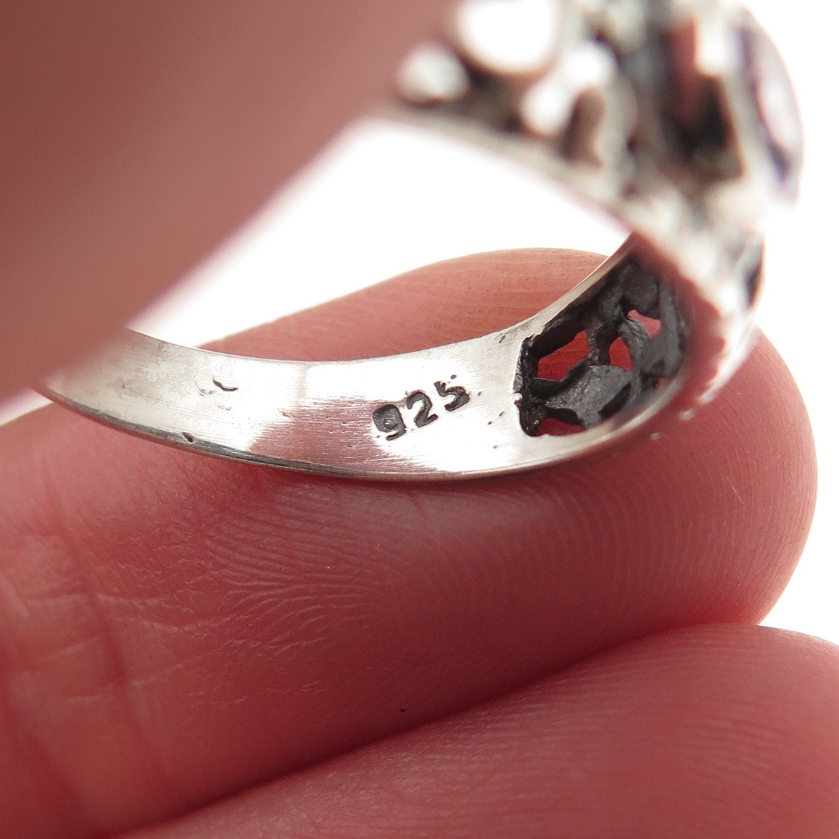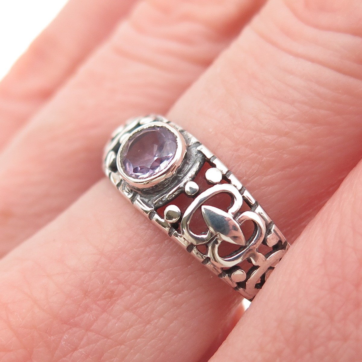 925 Sterling Silver Vintage Real Round-Cut Amethyst Ornate Ring Size 9
