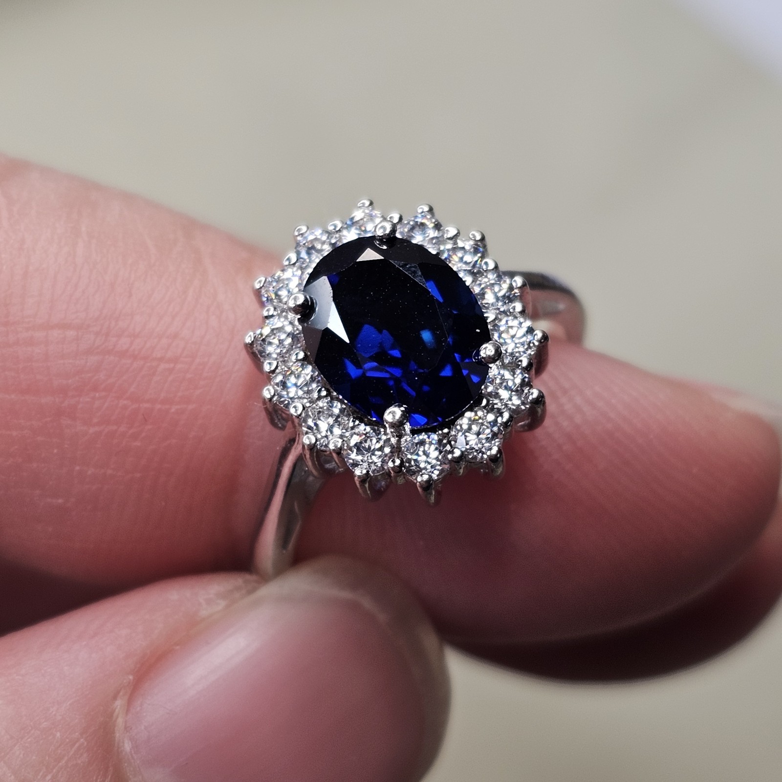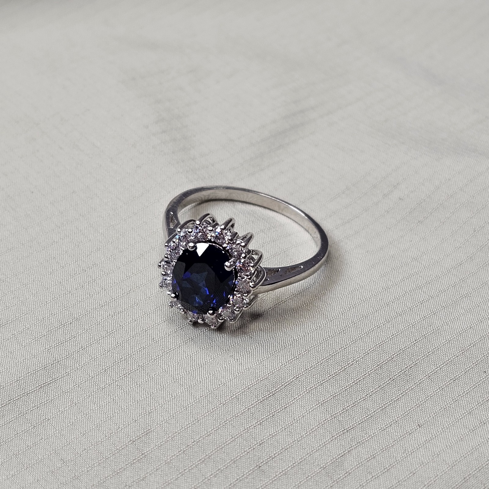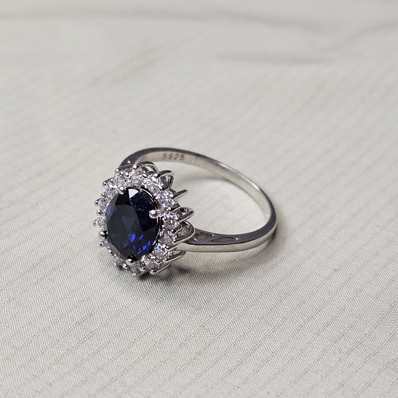 как выглядит 925 Sterling Silver Blue White Cubic Zirconia Ring Size 7 - 2.86g фото