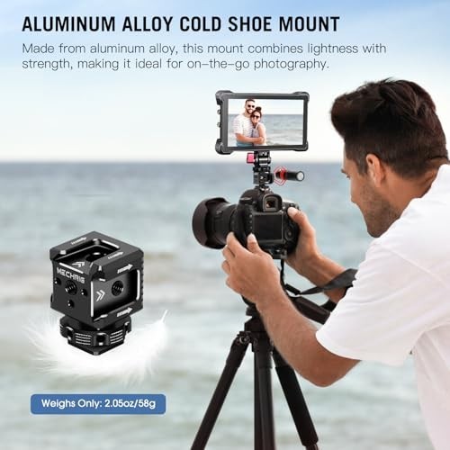Triple Cold Shoe Mount with 1/4 Thread - Aluminum Camera Extension Bracket for