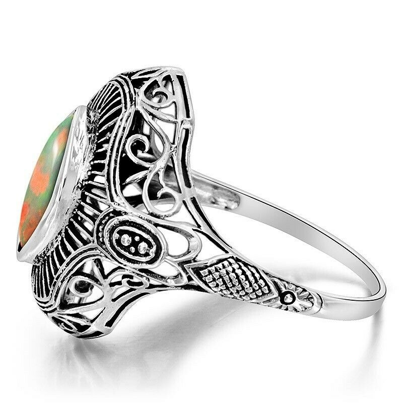 2CT Natural Fire Opal 925 Solid Sterling Silver Filigree Ring Jewelry Sz 9 ZF-2