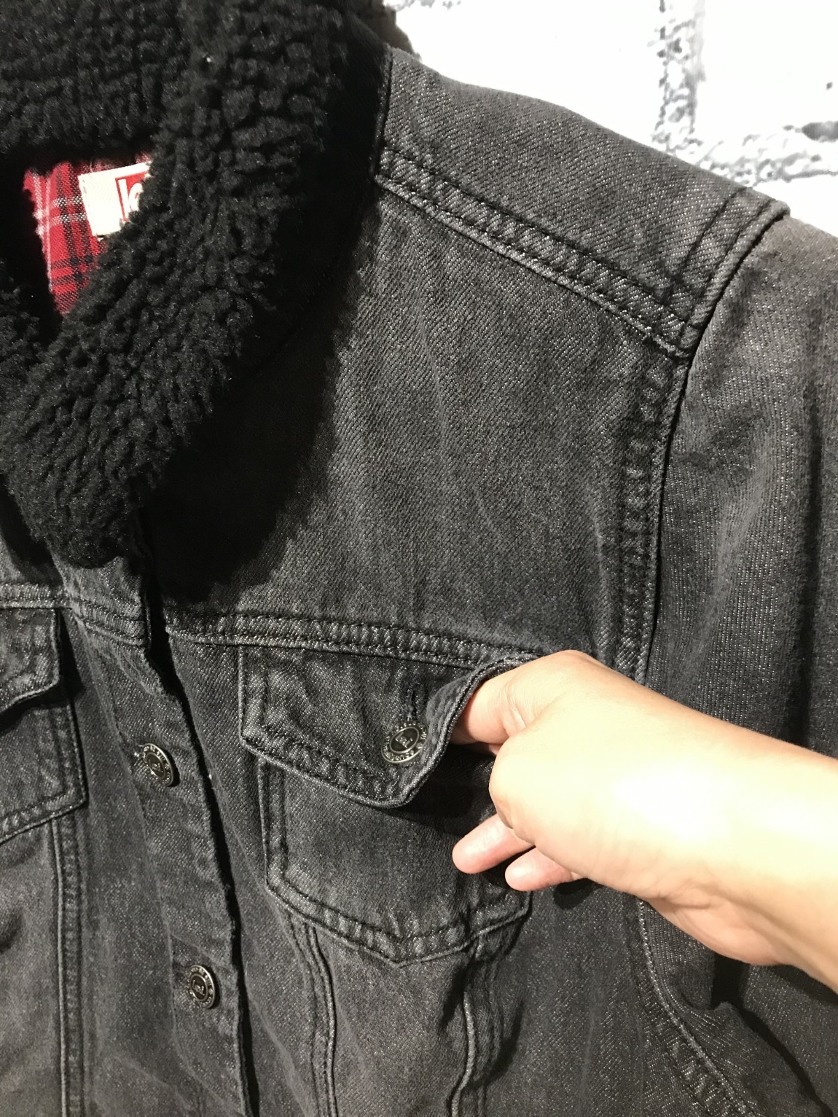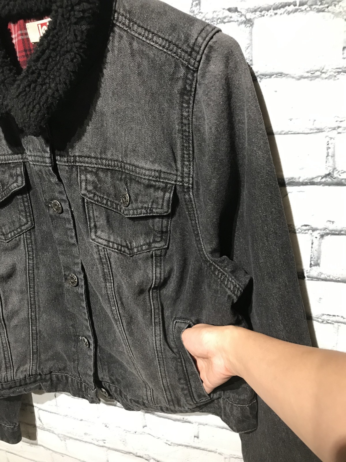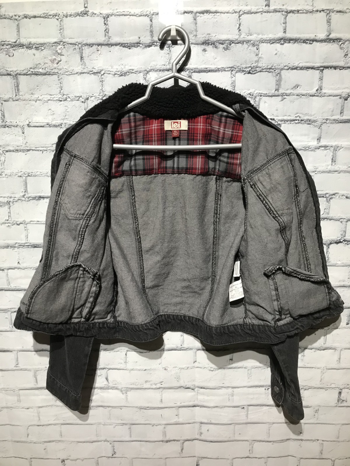 Lei, Kids XL, Black Denim Long Sleeve Jacket w Faux Fur Neck, 100 Cotton