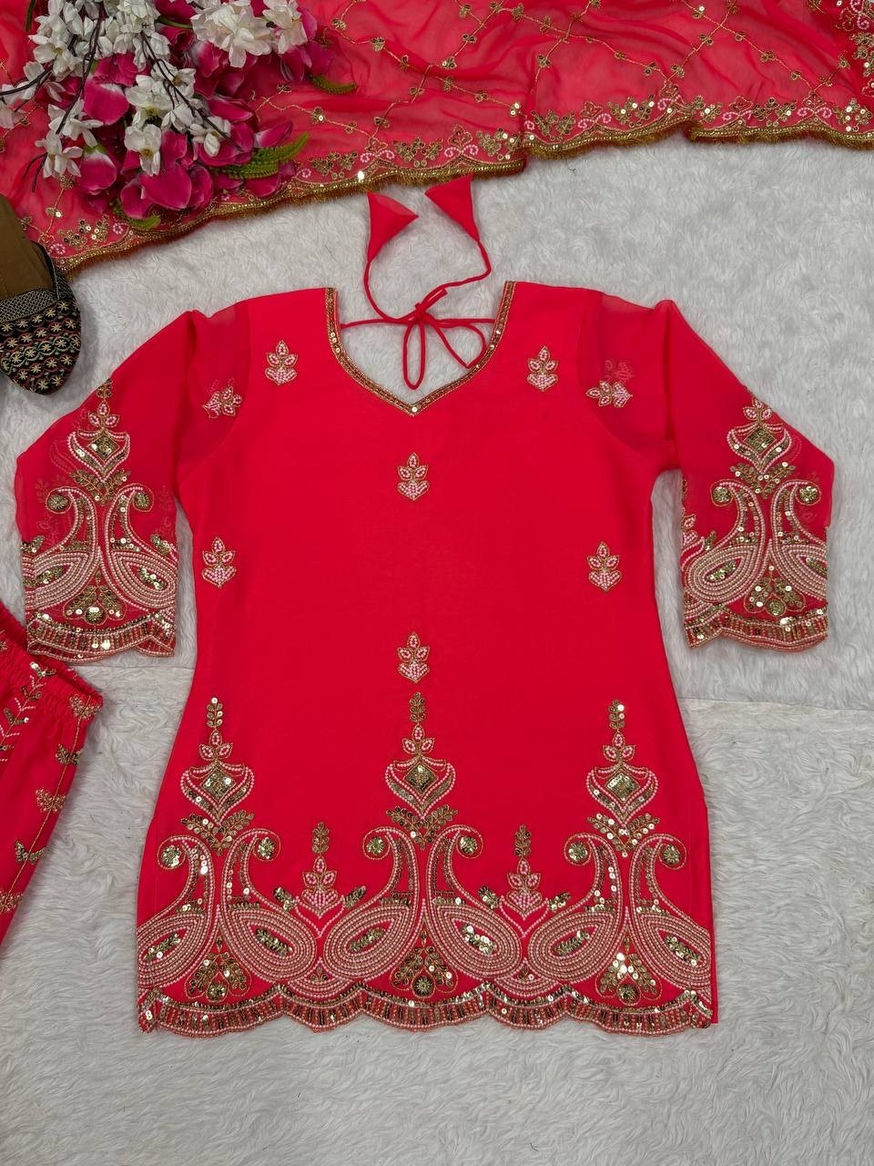 как выглядит Exclusive Heavy Faux Georgette Pink Top Palazzo With Dupatta For Women Girls фото