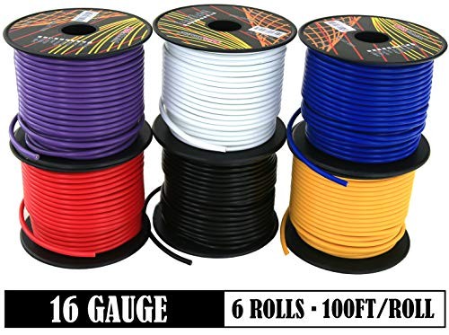 600ft CCA 16 Gauge Wire Automotive, 100ft Spool-6 16 AWG-100 ft-6 Pack1