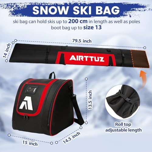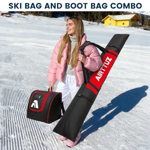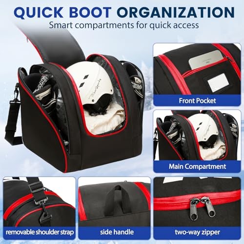 Ski Bag and Boot Bag Combo, Water-Resistant Ski Boot Travel Bag Fit blk/red