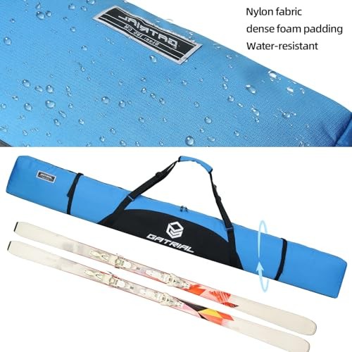 Padded Ski Bag for Air Travel, Fully Single Ski Travel Bags with 170cm Blue