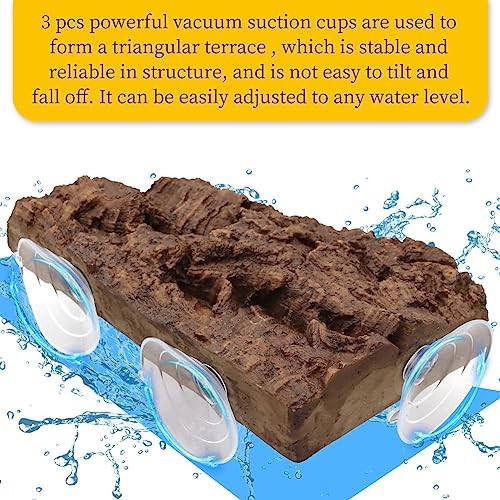 Turtle Basking Platform with Strong Suction Cups, Resin Tortoise Resting Brown