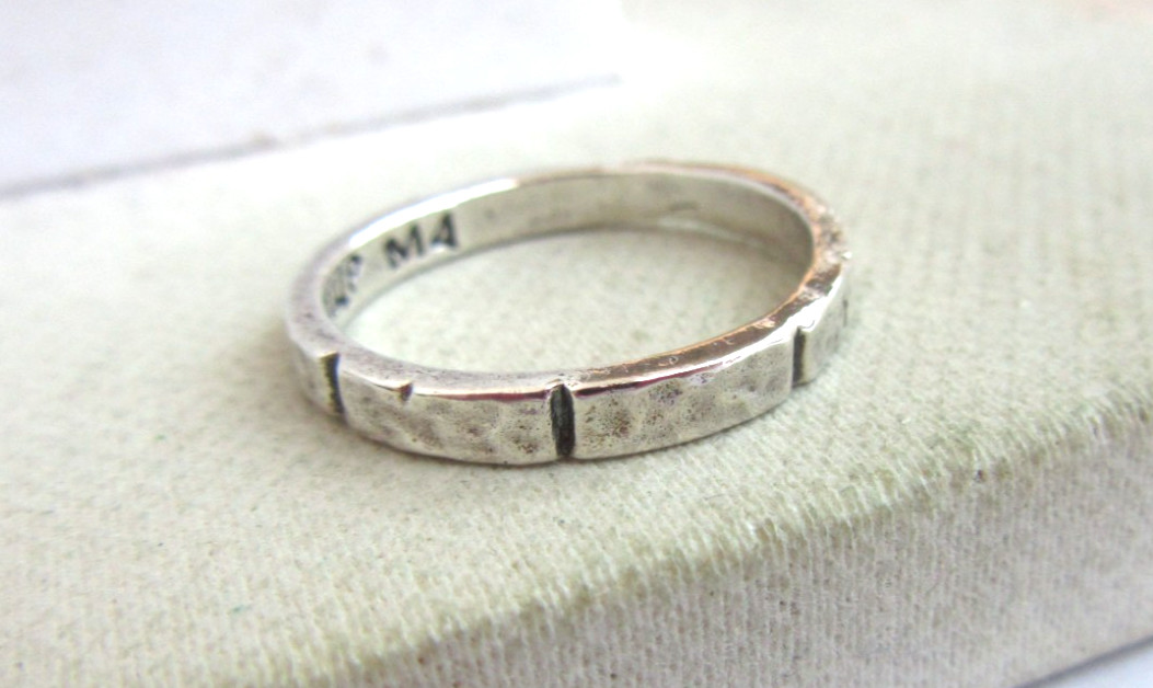 как выглядит 925 silver hammered design band ring size 6.5, stackable design фото